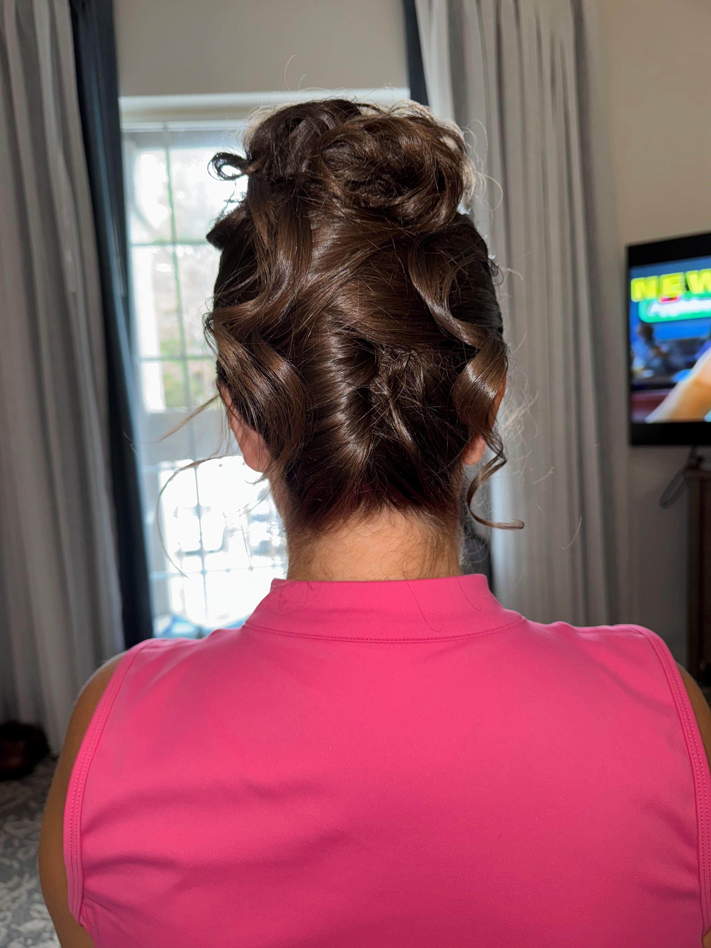Peach Glam did an amazing job with my hair. The updo she created for me looked absolutely perfect - it was elegant and beautiful, yet felt comfortable and secure throughout the entire event. She was punctual, sweet, and made the whole experience seamless. I kept getting compliments on my hair all day long, and it held up beautifully throughout the event. Highly recommend Peach Glam for beauty needs!