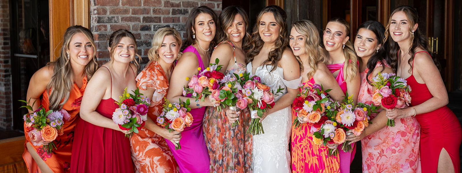 We used Addiction Florals for our bouquets, boutonnieres, and corsages. Everything came out beautifully! Kristine was able to find flowers that perfectly complemented the girls' dresses and matched my vision for minimal greenery and pops of color.