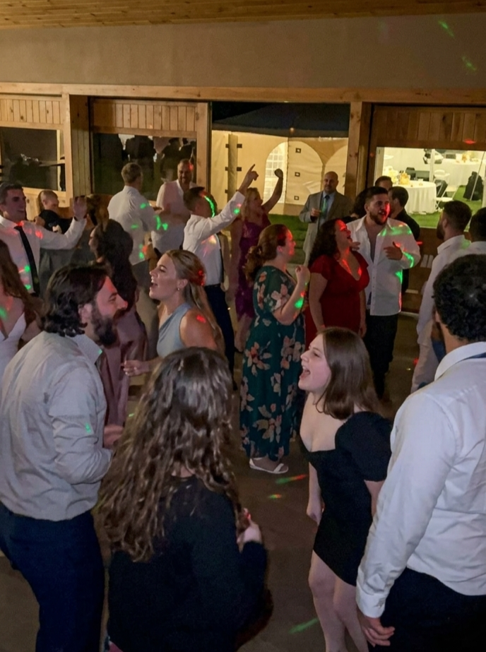 • Everything in the Classic Package • Ceremony sound & music • Customized playlist planning • Dance floor lighting • Timeline coordination with vendors. • Foam glow sticks Designed for couples who want a smooth, well-paced wedding from ceremony through last dance.