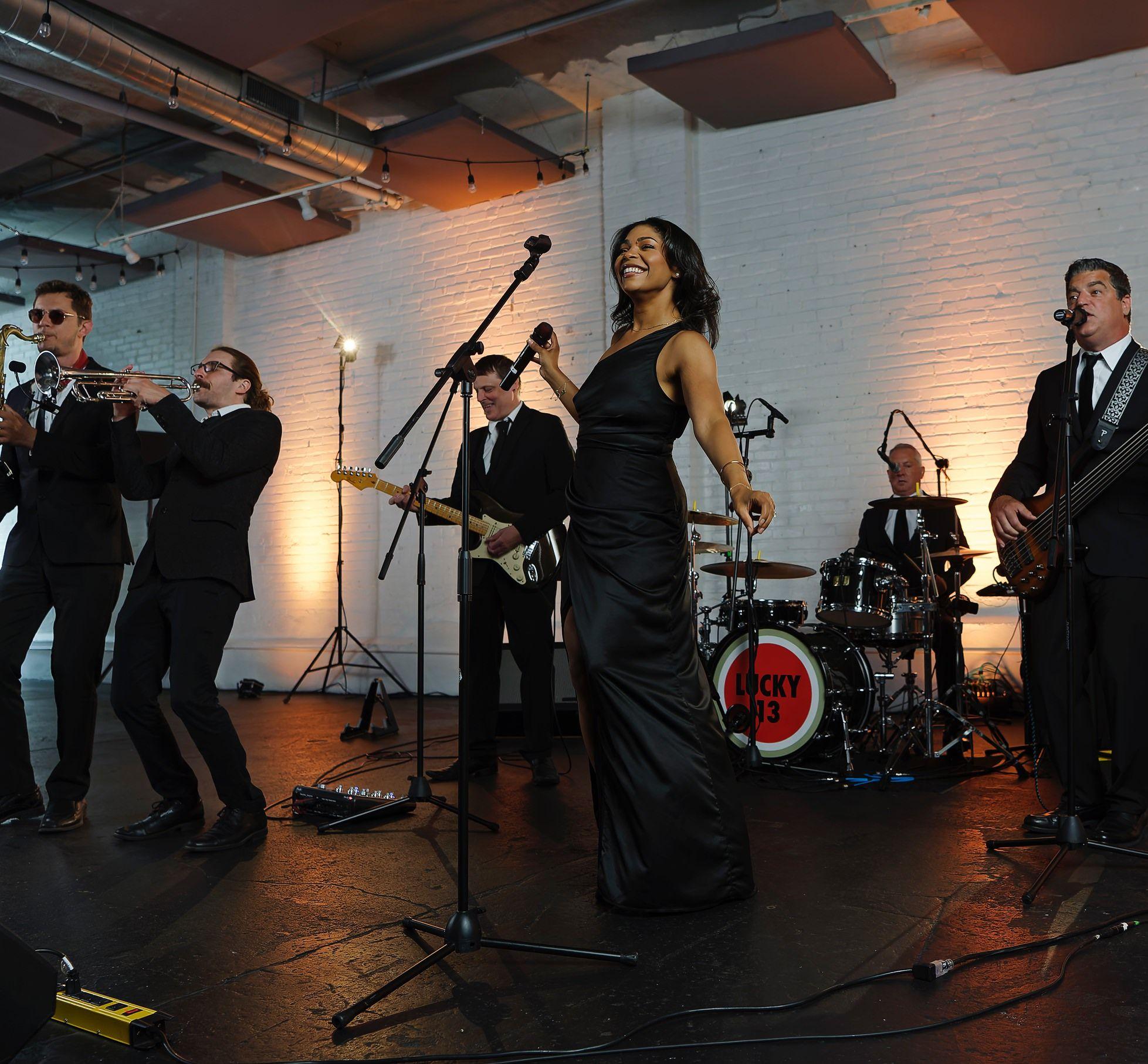 LUCKY 13 offers an incredible song list, unrivaled musicianship, sensational vocals and a high energy performance style that turns every wedding into a giant dance-party! Horns can be added upon request, and LUCKY 13 can provide additional musical services, such as ceremony and cocktail music or audio support, to make your celebration complete!