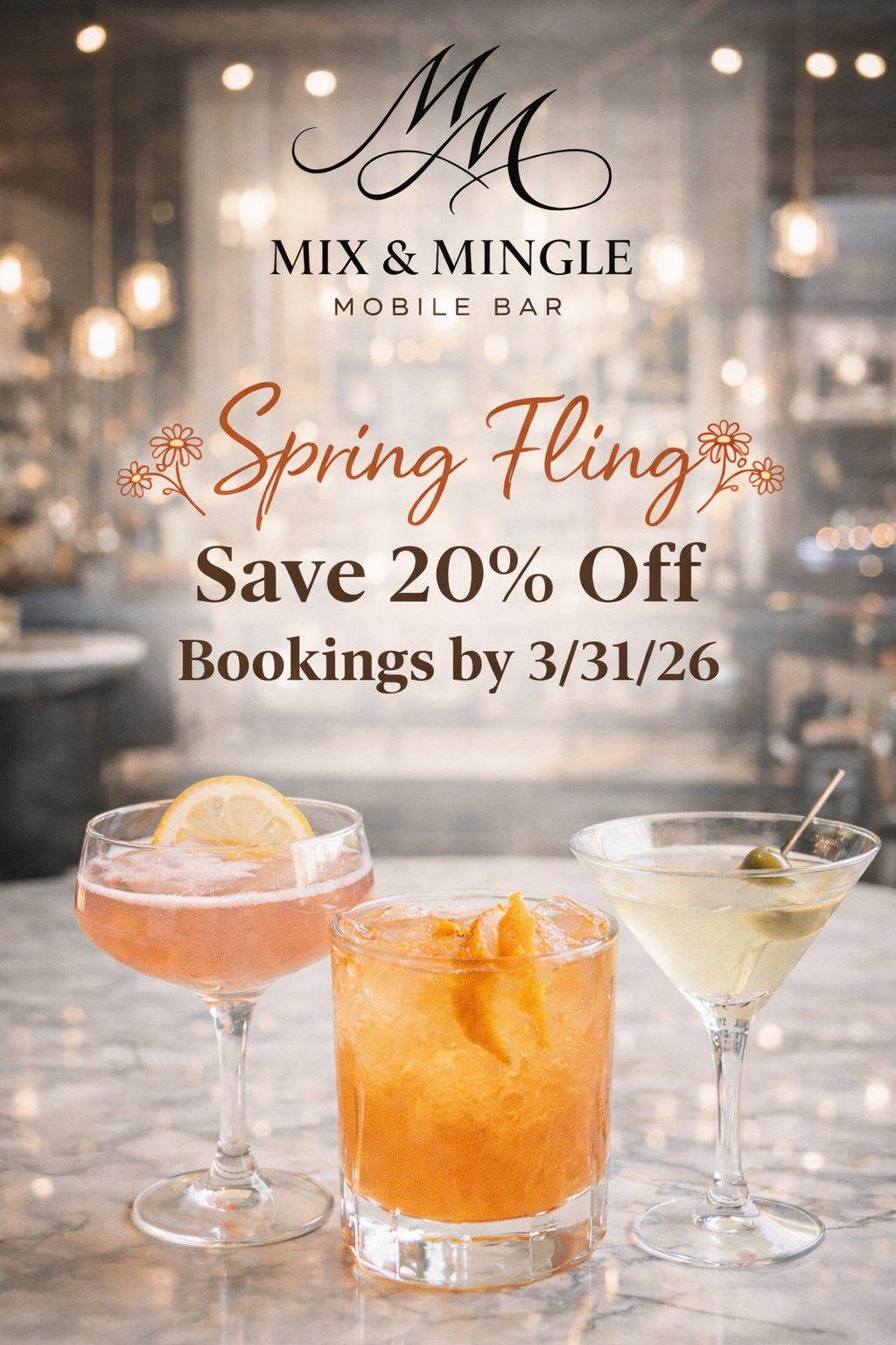 Spring is in the air, and so are the celebrations! Mix & Mingle Mobile Bar is excited to offer a Spring Fling Special — 20% OFF all mobile bar services when you book your event by April 1.