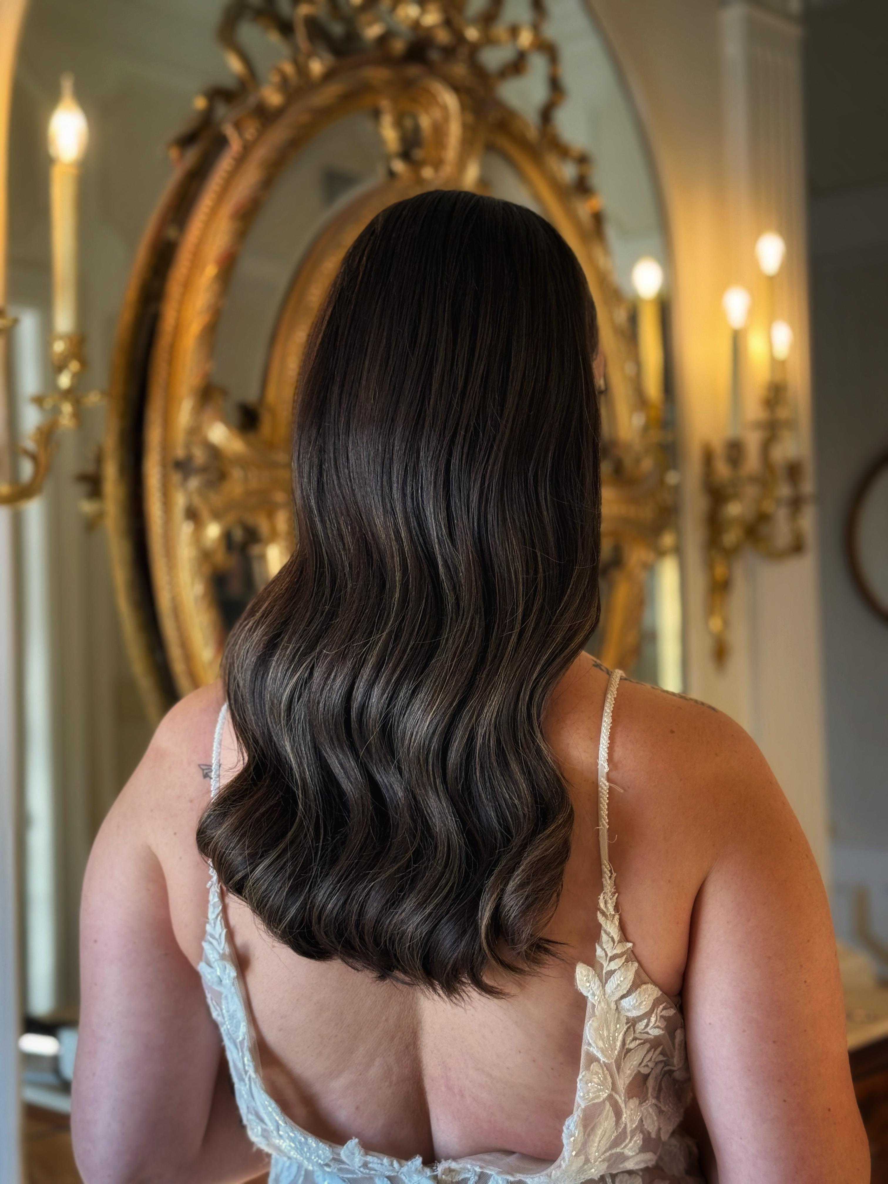 This package is ideal for bride looking for full glam look with Hollywood waves/voluminous/textured hairstyle. All makeup services include lash applications. Additional charges may apply based on location (outside of Richmond) and if services need to start before 8 am.
