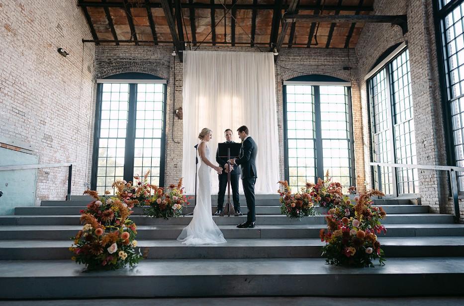 When you get married at Basilica Hudson, you can use the entire building, configured to your vision within any of our multiple spaces — Main Hall, North Hall, West Wing, and outdoor spaces (7,000 square feet indoors; 10,000 square feet outdoors). Basilica Hudson offers ample indoor restrooms and plenty of onsite parking. So why is Basilica Hudson such a unique and special wedding venue? Here are a few reasons why it is: No cut off time (pending NYS regulations), location doesn’t have a noise ordinance Bring in your favorite vendors (we do have preferred caterers, planners and rental companies) Start and End time of the event is up to you Pet friendly venue Large amount of rentals already included in site fee (farm tables, wood folding chairs, stationery and portable bars, bathrooms, lighting)