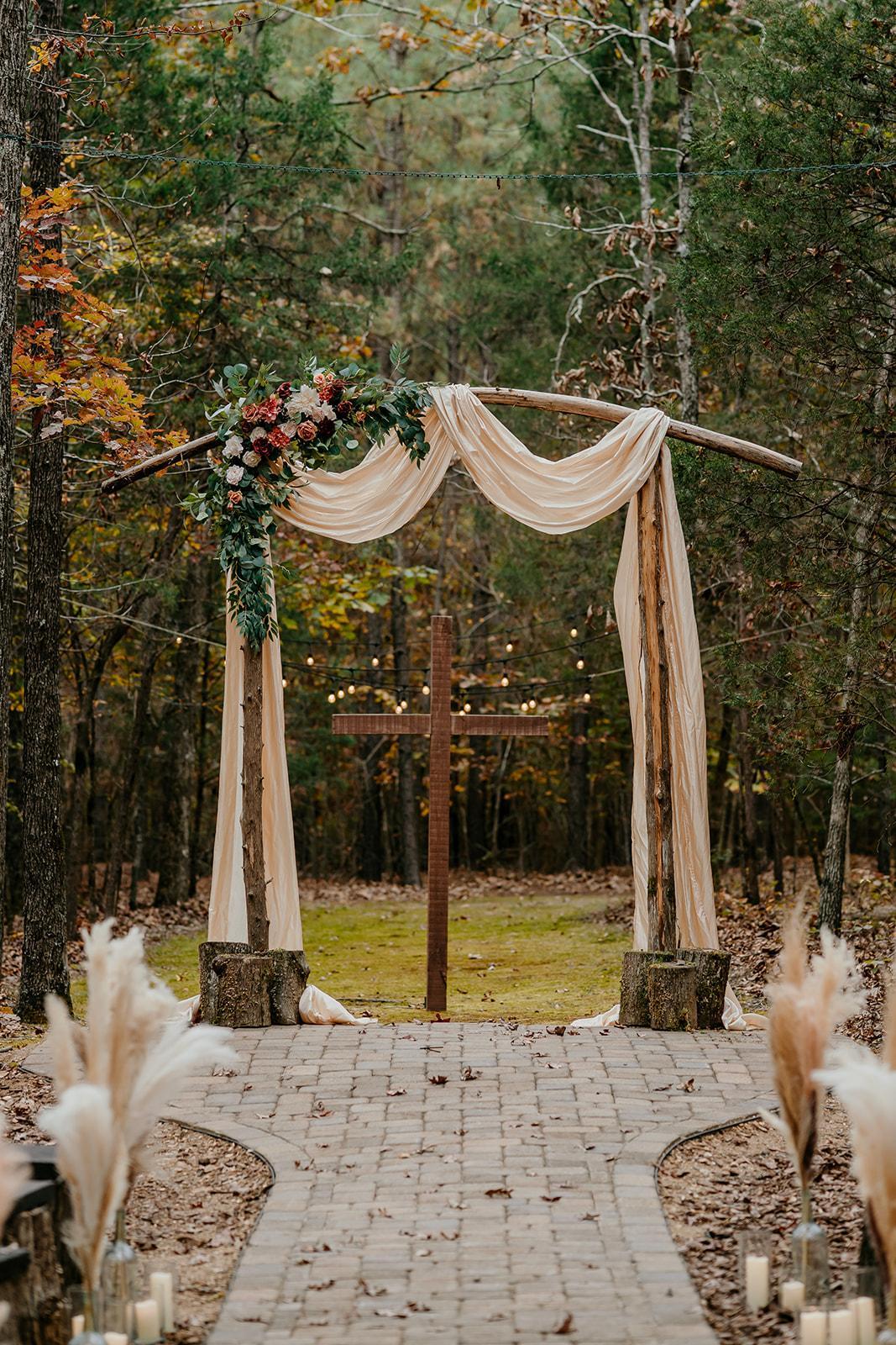 - Rustic cedar arch - Handmade log benches - Golf Cart for easy transport for guests - Beautiful hand-crafted welcome table
