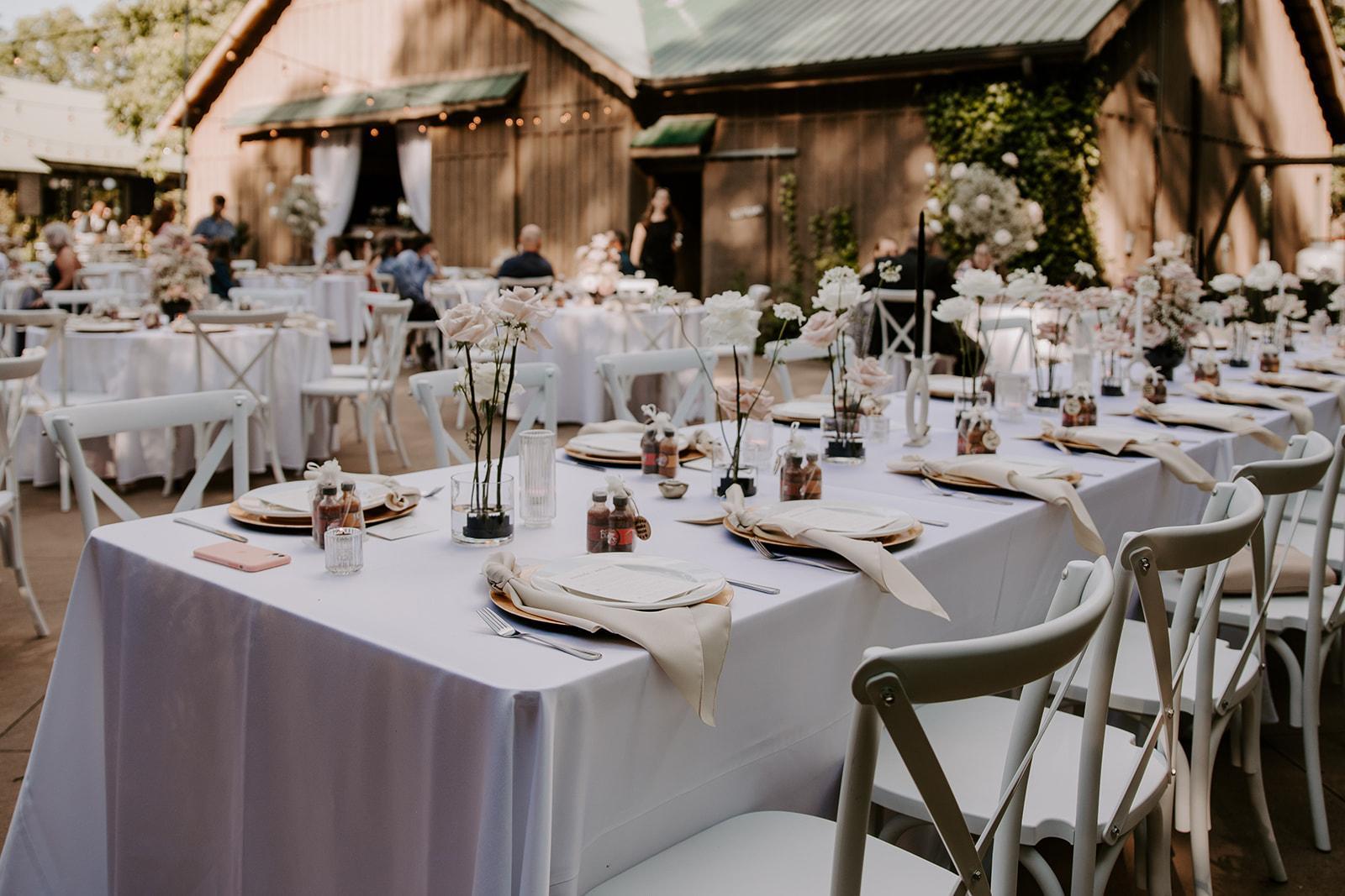 - ceremony seating, reception tables and chairs