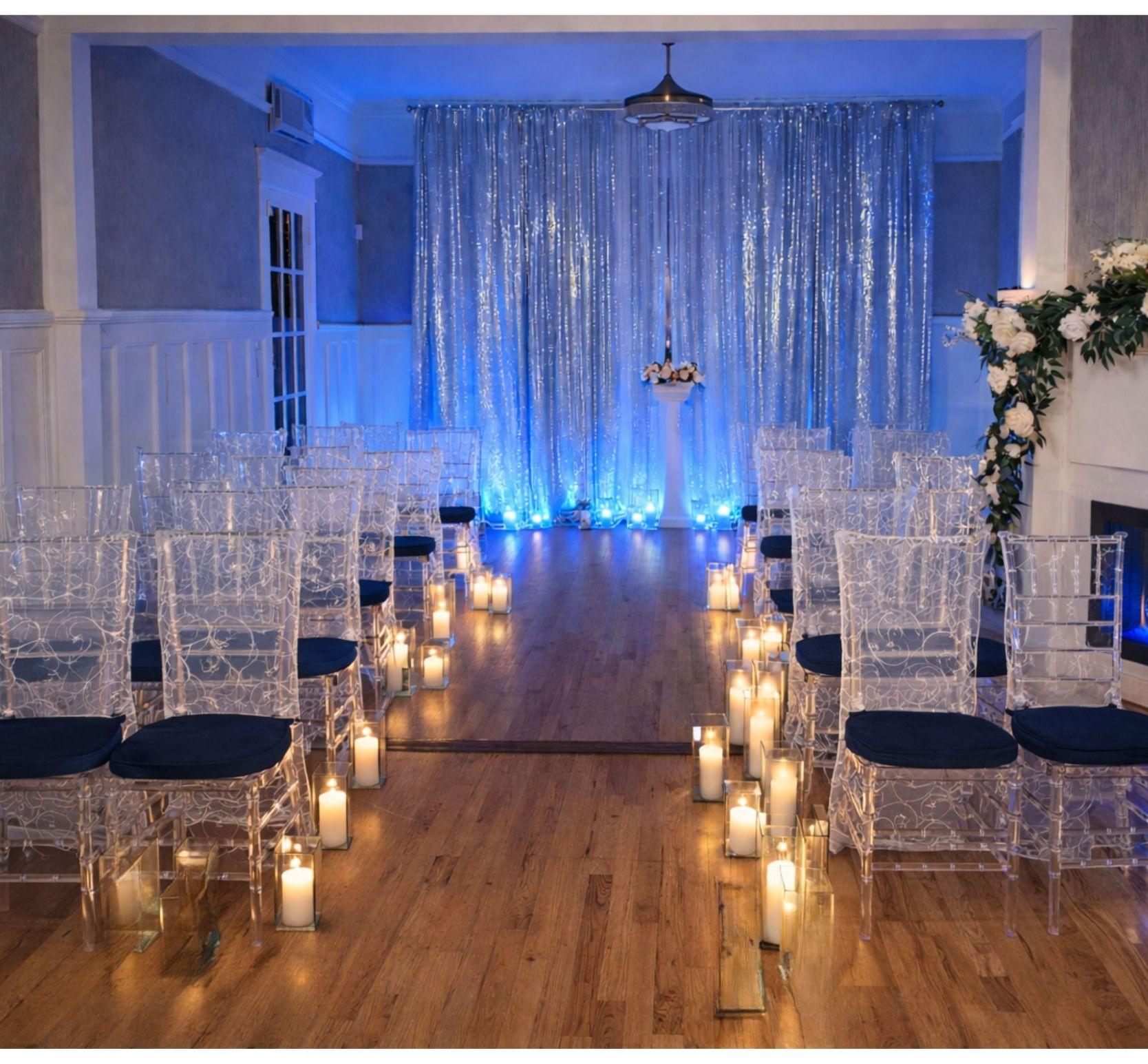 - Chiavari Chairs - Tables - Dessert Antique Buffet - White Table Covers - Gold, Silver or Blue Runners - Wedding Arch - PA System