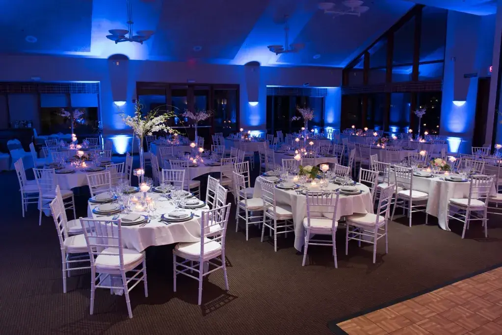 The venue features a sophisticated blend of indoor and outdoor spaces designed to flow effortlessly from ceremony to celebration. The outdoor ceremony site offers a tranquil atmosphere with lush, rolling greens and natural light, perfect for exchanging vows. For the reception, the main ballroom provides an elegant, classic aesthetic with expansive windows that overlook the scenic grounds, allowing guests to enjoy the sunset from the comfort of the hall. The space is a blank canvas, ready to be transformed with your choice of decor, while the professional layout ensures a perfect balance for dining and dancing.