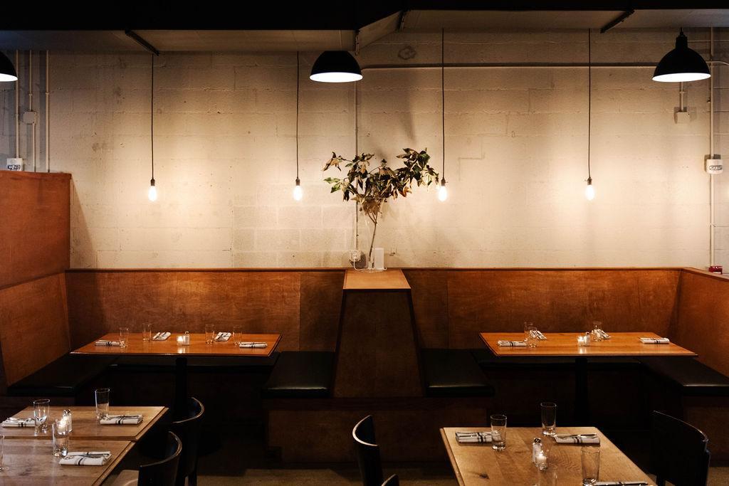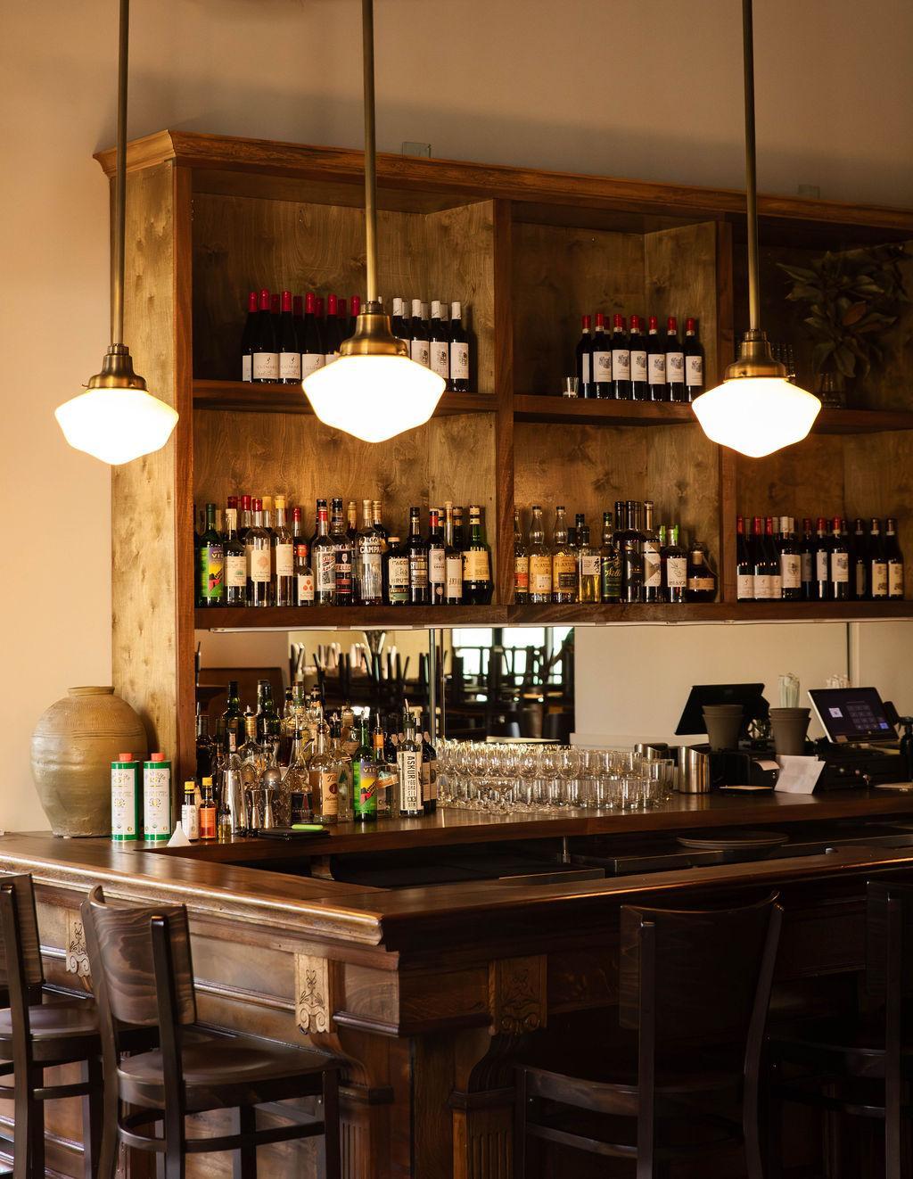 The Spuntino Dining Room is a grand, high-ceilinged space with warm wood accents that can accommodate a variety of event styles. Designed to accommodate a variety of event styles, the room features a stunning bar upon entry, cozy booth seating, and long communal tables perfect for family-style dining and shared moments. Low lighting and candlelight set a romantic tone, while adjoining lounge areas offer relaxed spaces for mingling and conversation.
