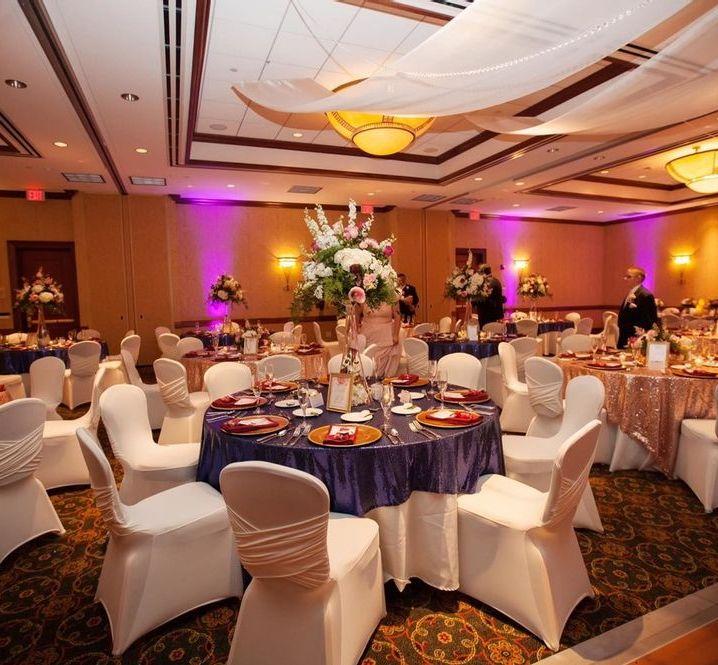 The Grand Ballroom commands attention with its impressive 5,082 square feet of adaptable event space. This expansive venue transforms seamlessly to meet diverse event needs, whether hosting theater-style ceremonies or creating an inviting banquet atmosphere for your Reception. Multiple entrance points and open floor plan facilitate smooth guest flow and creative event design possibilities. The space features integrated dance floor capabilities and can be enhanced with dramatic uplighting to create the perfect ambiance for your special day. With its substantial capacity and versatile configuration options, our event space serves as an ideal canvas for your Wedding Day.