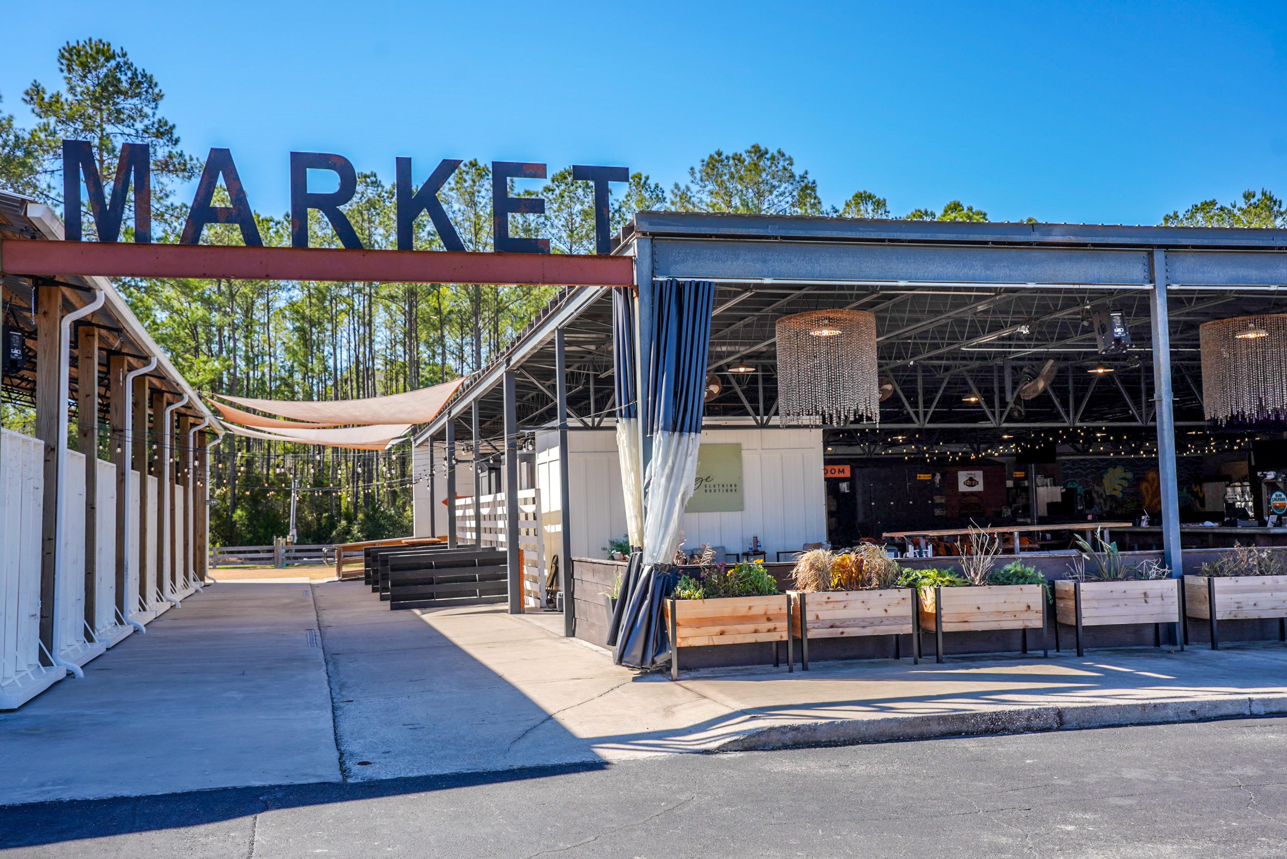 The Market is our main gathering area, featuring a beer and wine bar, onsite restaurants, shops, and various seating arrangements.