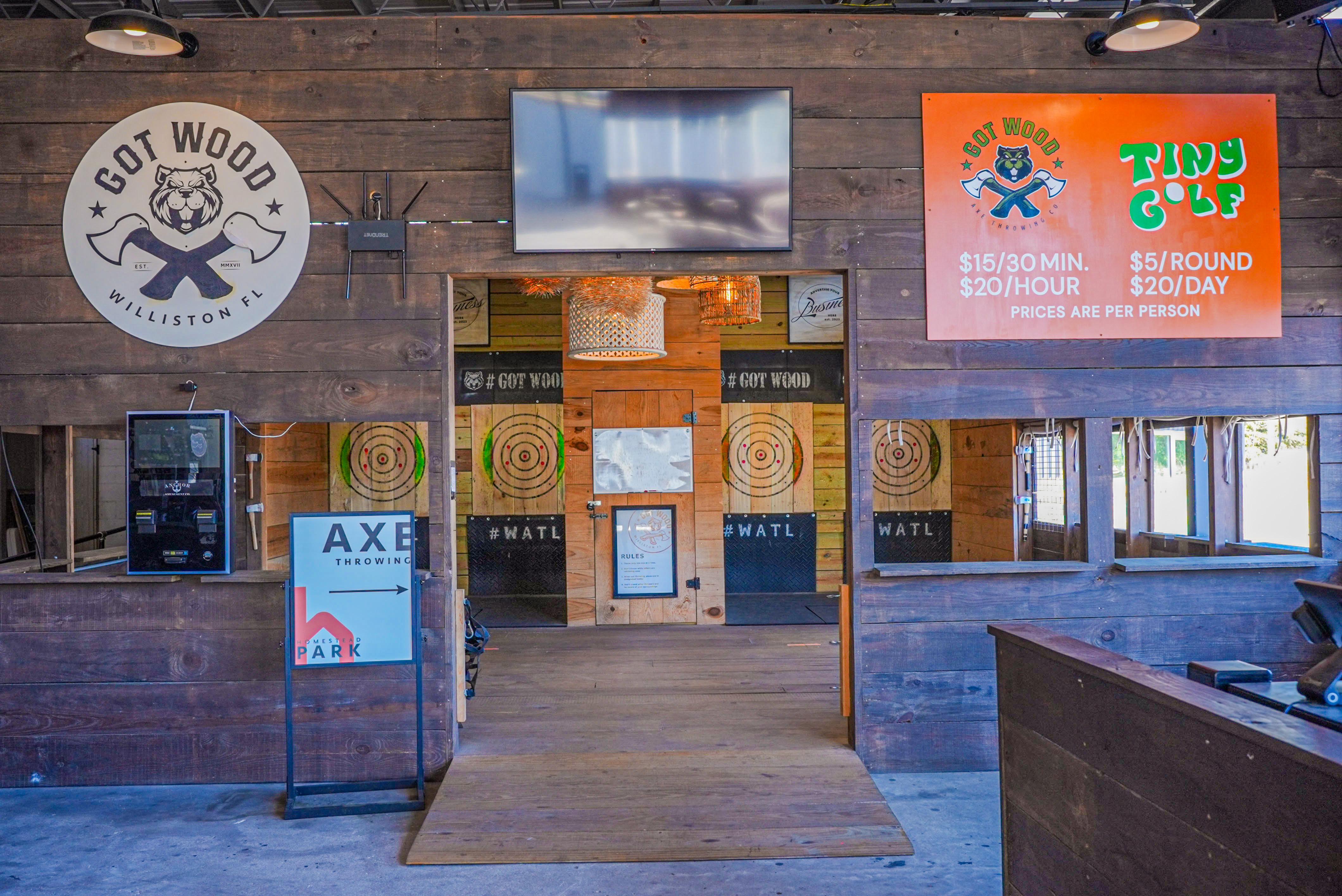 Homestead Park is a vibrant gathering spot in Williston, FL, featuring an open-air marketplace, unique tiny-house shops, great food and drinks, and fun activities like axe-throwing, tiny golf, and sand volleyball. With a spacious events pavilion, a new 1,500-square-foot event tent, and full support services including catering, bar setup, seating, and sound, it’s an ideal setting for weddings, corporate events, and celebrations of all kinds. Blending relaxed outdoor charm with built-in entertainment, Homestead Park makes hosting a memorable, stress-free event effortless.