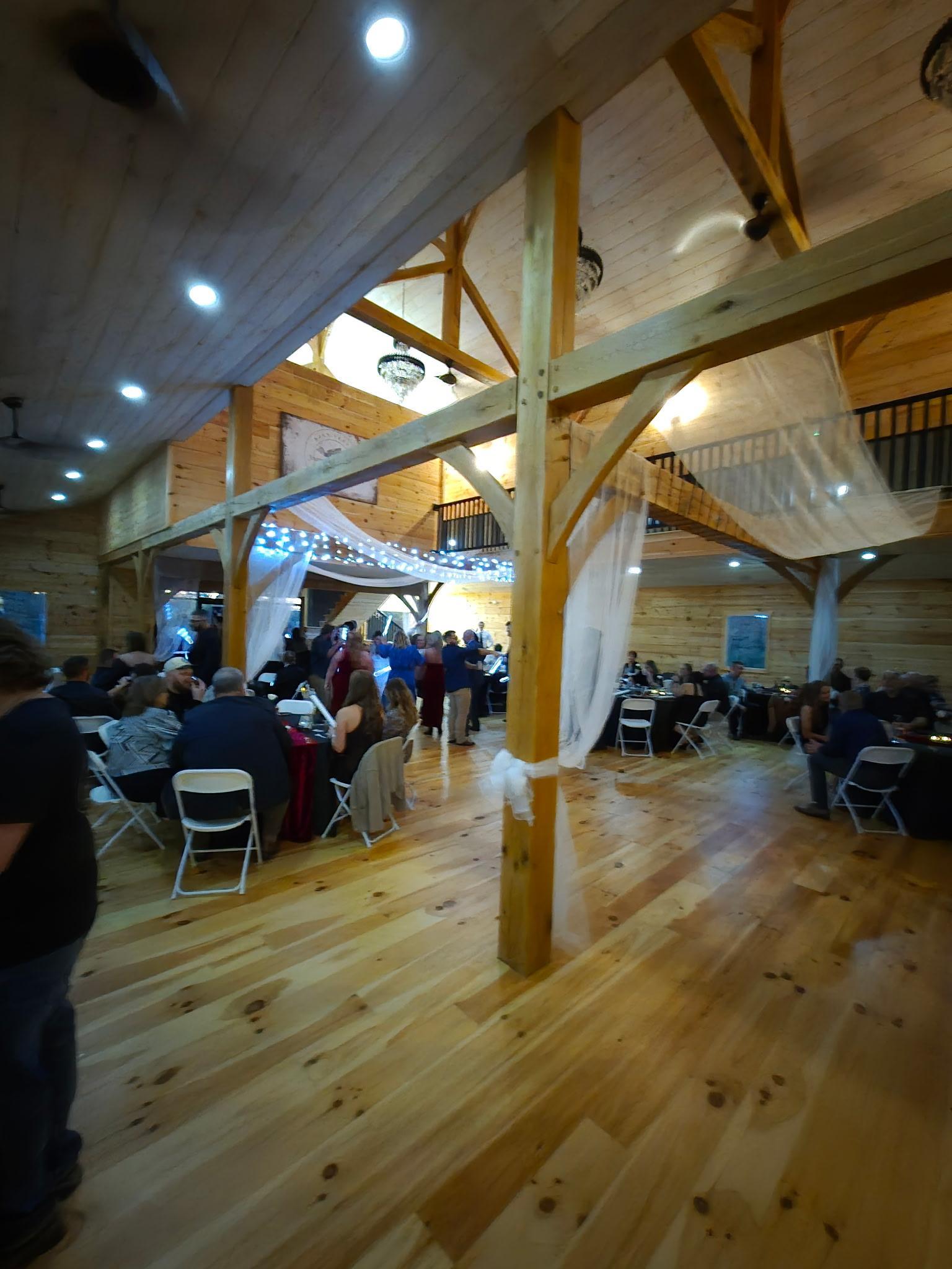 Charming timber frame venue nestled in the country but close to all amenities, the look of an old style barn but with a modern day style, spacious open area with high ceilings and timber beams with a cat walk for brides to make there appearance , beautiful ceremony area with a balcony overlooking the pond and private area for bride and groom to prepare for there day, A lower level for cocktail hour or rehearsal dinner or if thinking of a outdoor wedding a great entrance and reception area. This venue has many locations to make your ceremony a memorable and extraordinary event