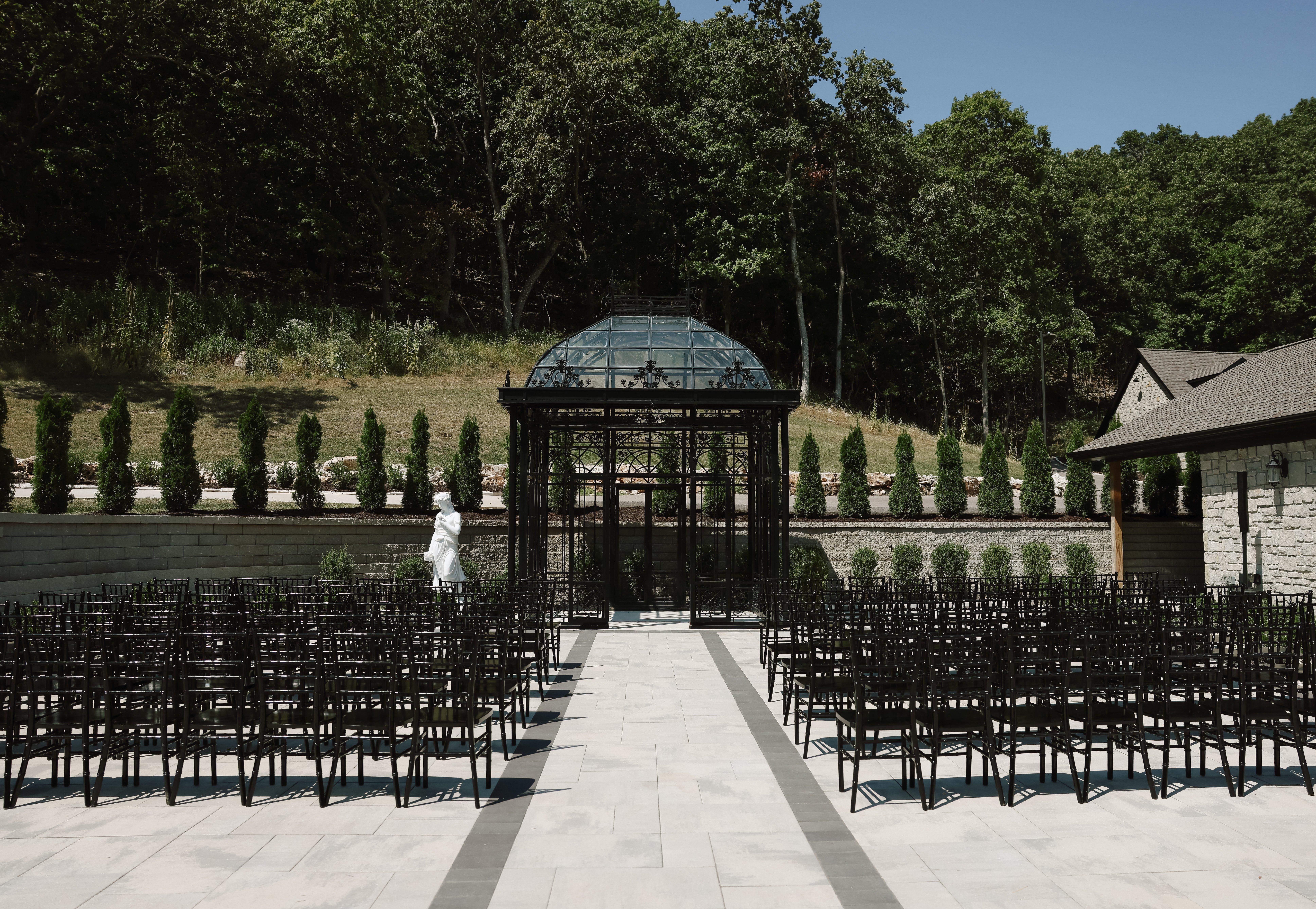 Knotting Hills is a 75-acre resort just 30 minutes from the heart of St. Louis, offering two secluded venues; The Main Venue and The Lake. Located in a valley surrounded by Missouri forest, European-inspired grounds and architecture fill the space with extensive gardens, scenic Lake views, fountains, and a waterfall. On-site accommodations and housing are available for up to 60 guests. The Bridal Suite and Groom's Quarters at each venue include special details to elevate wedding weekend experiences from start to finish, such as a pickle ball court, putting green, arcade games, cigar lounge, pool, jacuzzi and more.
