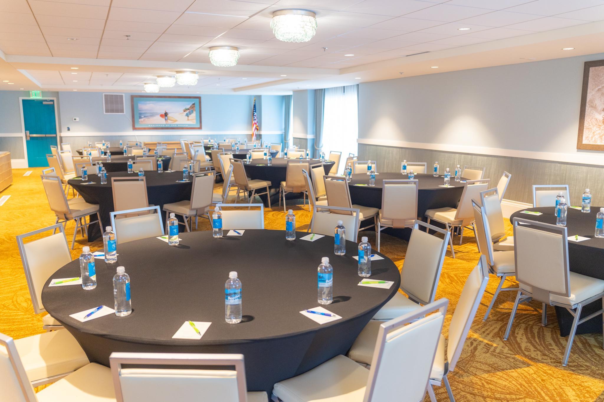 Say "I do" with our Wedding Package! It includes exclusive use of our 4th Floor Terrace & Seagrass Meeting Room for both your ceremony & reception, offering stunning ocean views. Enjoy flexibility with rectangular, round & cocktail tables, plus your choice of black or white linens & seating. We provide chafing dishes, plating, silverware, napkins & a water station, for a seamless celebration. Best of all, there’s no food and beverage minimum, giving you freedom to plan your perfect day!