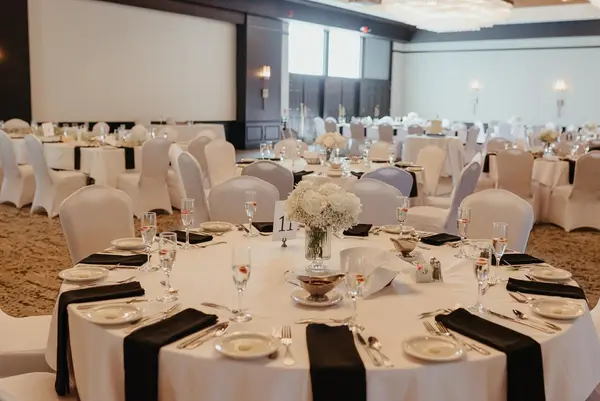 - Round or Rectangular banquet tables - Banquet chairs with chair covers - Tablecloths, napkins, and all tableware - Built-in Bar and Dance Floor - High cielings complete with 4 dimmable chandeliers - Classical entryway with space for seating chart, gift table, or guest book