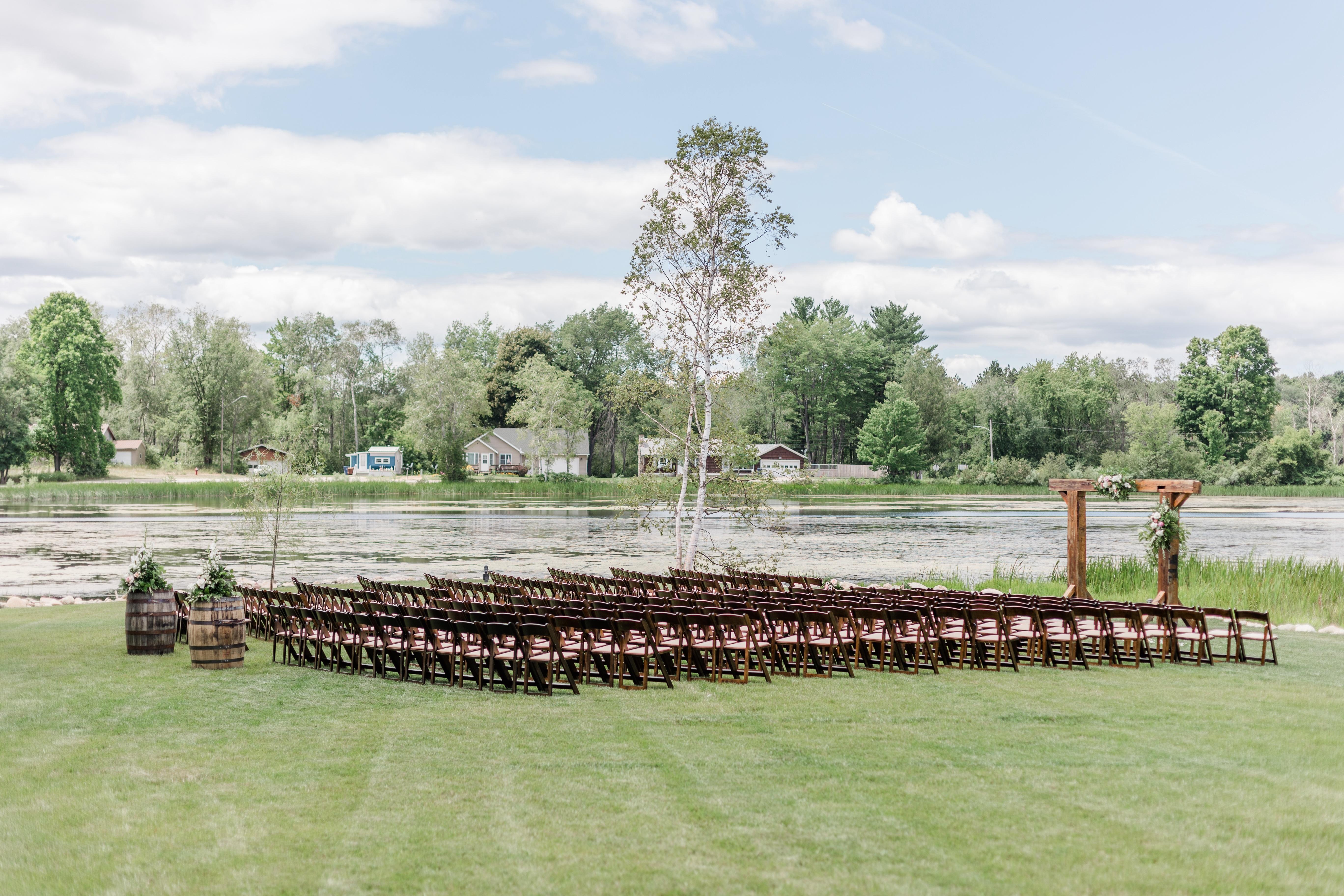 The Olde Mill Lodge Elite Package is our top-tier option for the ceremony site, perfect for couples who want to fully relax and enjoy their wedding weekend without worrying about accommodations or getting ready. This package includes accommodations for up to 18 people, staying the night before and of the wedding, a rehearsal the night before, an outdoor ceremony area by the water, ceremony chairs (set up and tear down), a wedding arch, and access to the property for stunning photo opportunities.