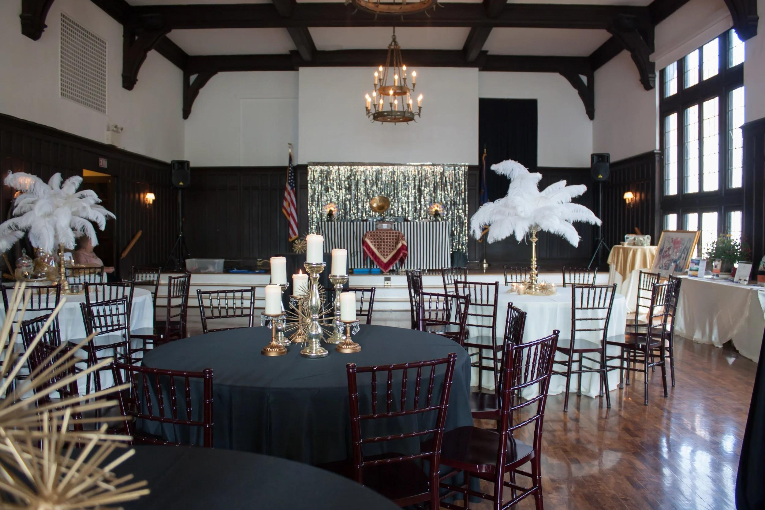 The Grand Ballroom is the crown jewel of the Flemming Mansion at the Civic Club of Harrisburg. Originally designed as six bedrooms in the early 20th century, the space was dramatically renovated in 1916 to create the open, two-story hall seen today. Located on the second floor, this space features 25-foot ceilings, three elegant chandeliers, and a 300-square-foot stage perfect for head tables or live entertainment.