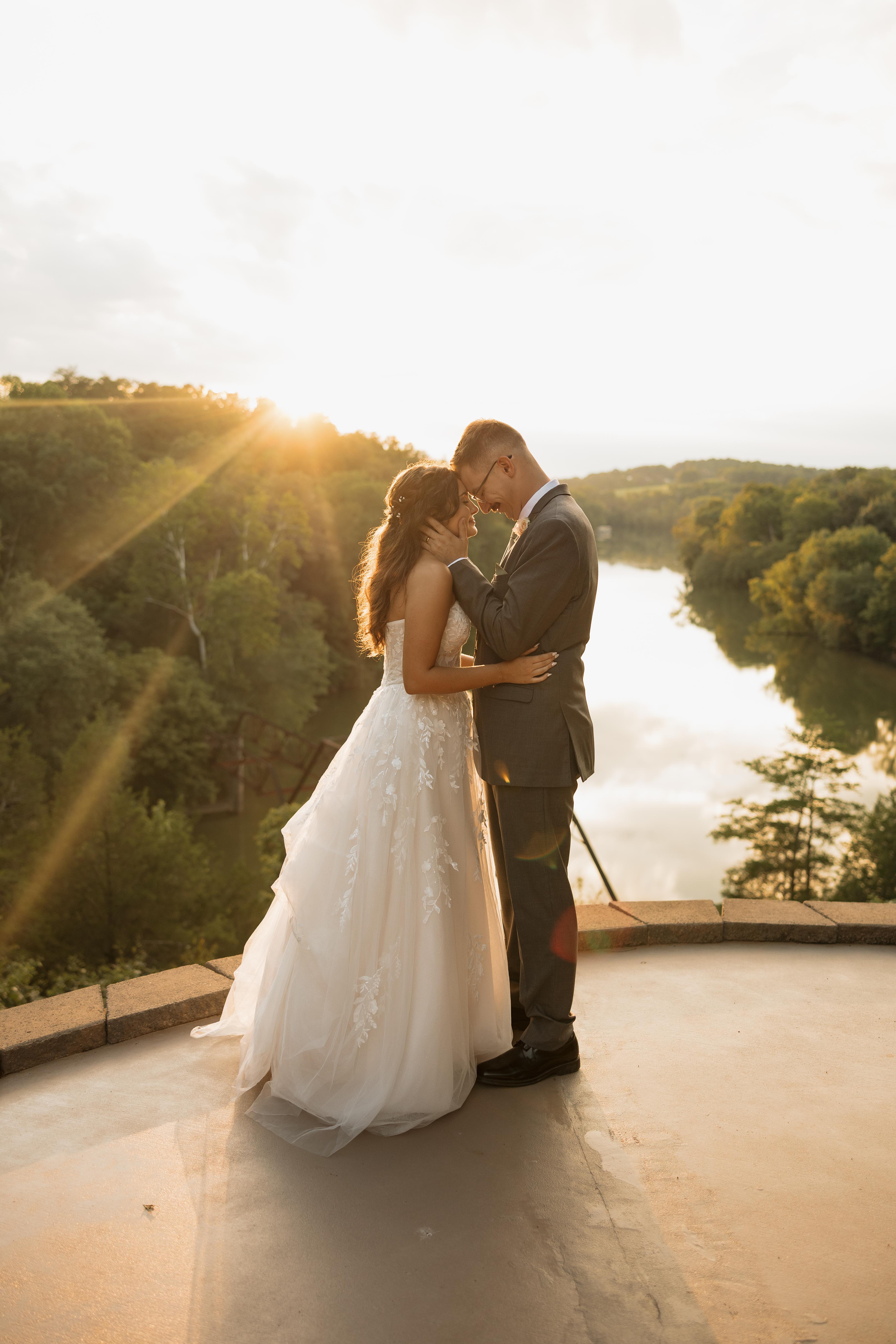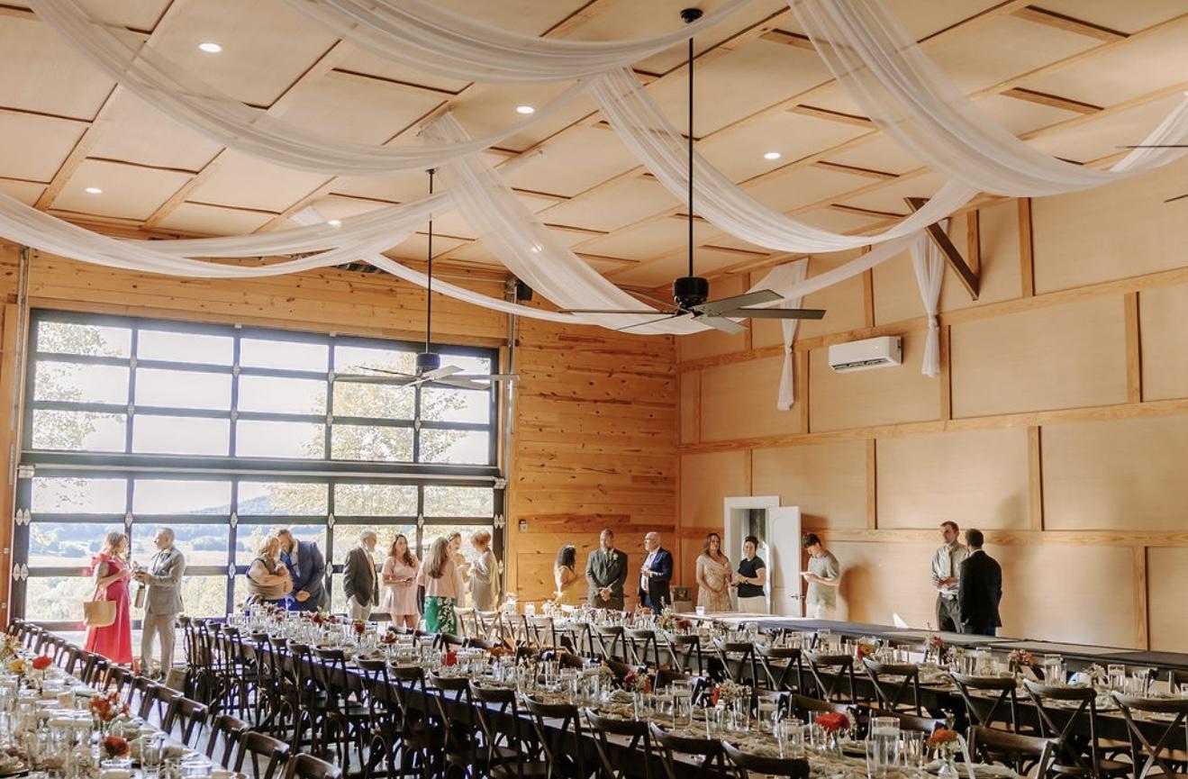 At River Cliff, we know how important your special day is, and we're dedicated to making it everything you envision. Our stunning mountainside venue offers breathtaking river views at our ceremony overlook, a grapevine pergola where you can dance the night away, and exceptional hospitality. Spanning 5,000 square feet, our venue includes a bridal suite, groom’s retreat, kitchen, and bathrooms. The open venue area can accommodate up to 200 guests for ceremony and/or reception. Beautiful stained-glass windows and scenic views provide a perfect backdrop for your celebration. Our packages offer venue access, tables, linens, chairs, and decor for ceremonies and receptions. You’ll also receive a wedding planner who takes care of setting up and decorating all areas. You also have a day-of coordinator to help ensure everything runs smoothly. We look forward to making your wedding dreams a reality!