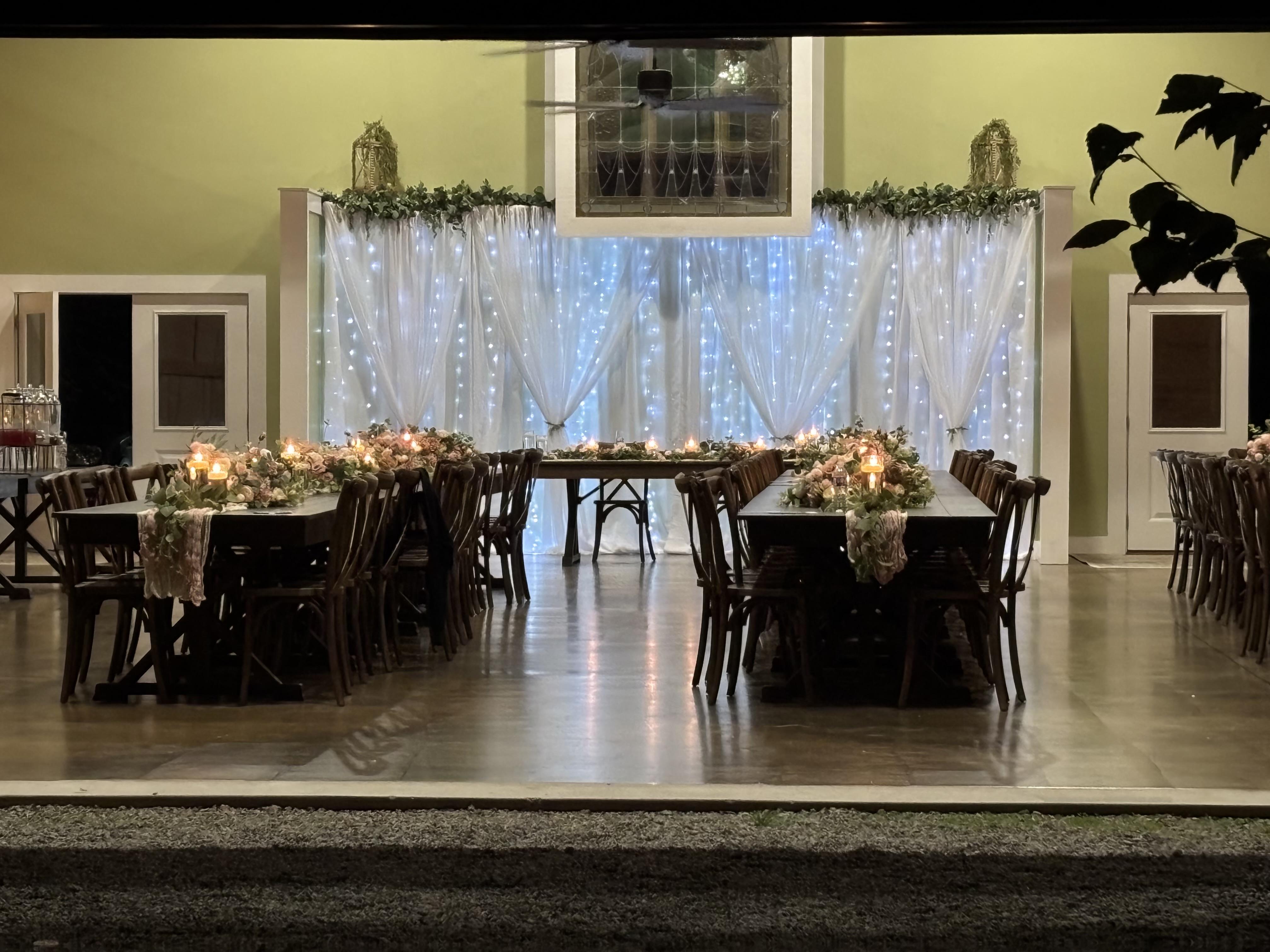 - All indoor areas Climate controlled - Tables, chairs and linens is included in the pricing - Set up, break down and clean up is included in the pricing - Use of any decor is included in the pricing - Dimmable lights