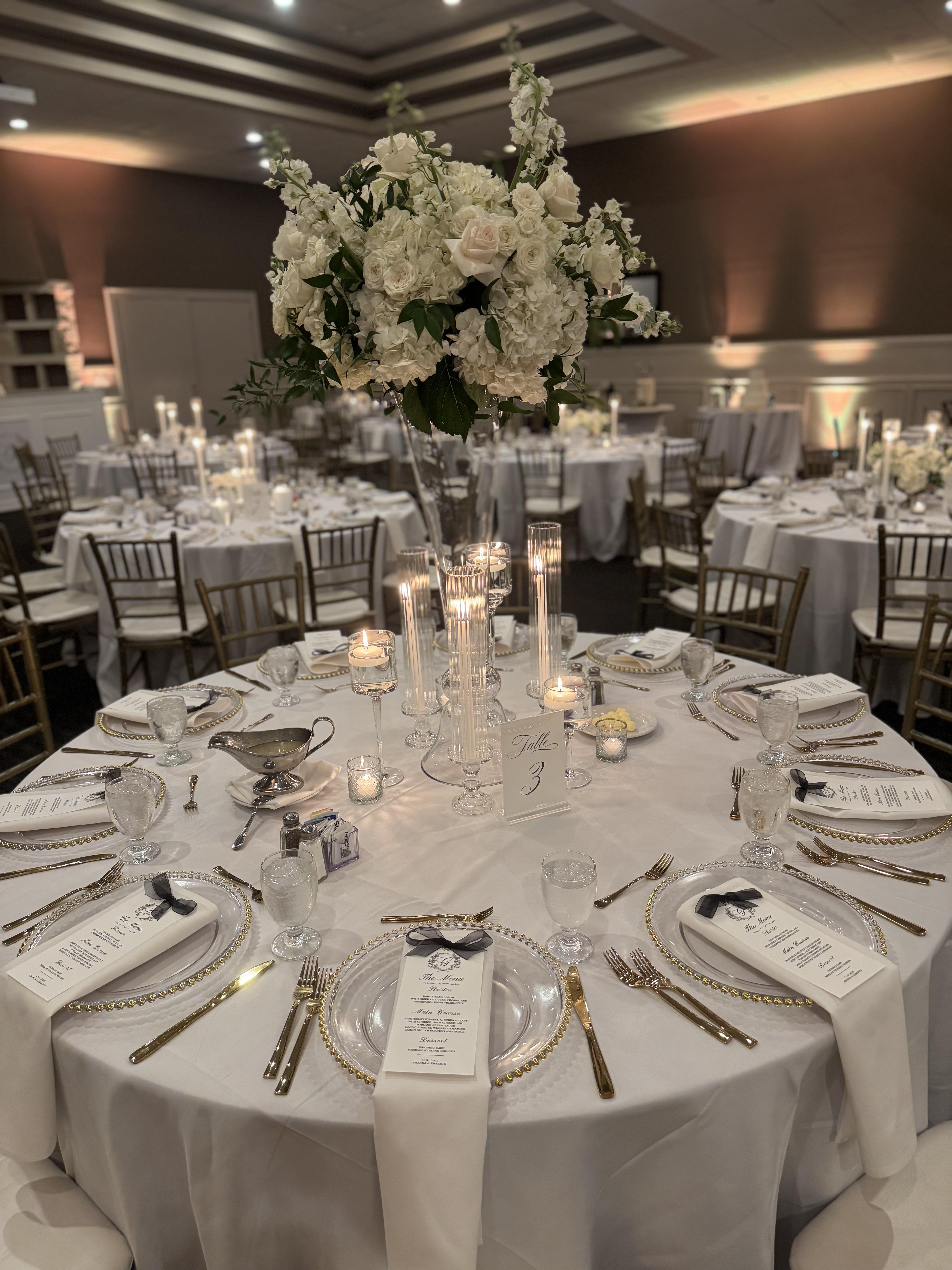 One Hour Cocktail Reception One Hour Traditional Open Bar Choice of Three (3) Passed Hors D'oeuvres Three Hour Dinner Reception Two Course Plated Dinner + Choice of Starter + Choice of Two (2) Entrees + Vegetarian Entrée