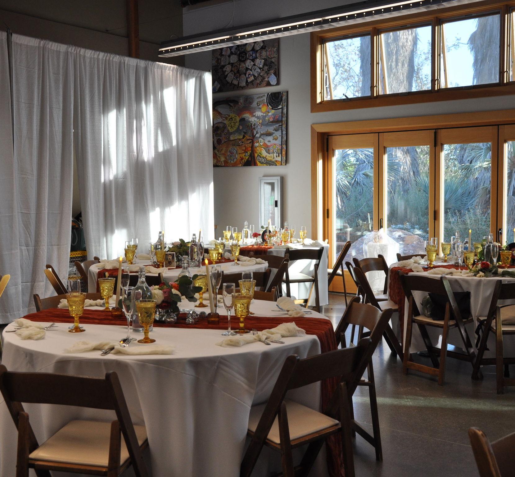 Welcome guests into the Nature Museum where they can read about our native gardens and animal specimens. Surrounded by natural decor and high ceilings, guests can gain insight into the mission and role of the ENC in our surrounding community, all while sipping on cocktails or mingling with others.