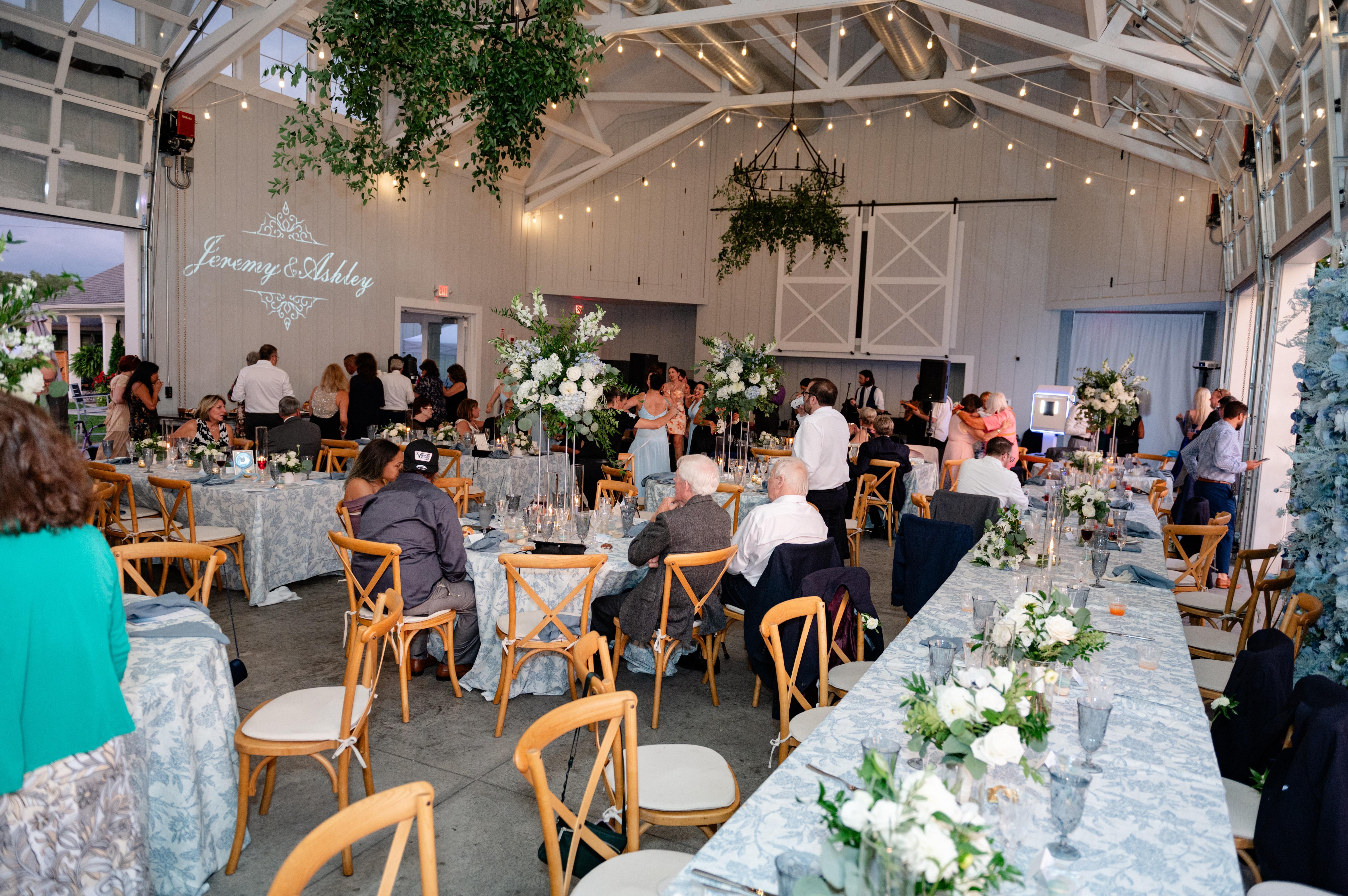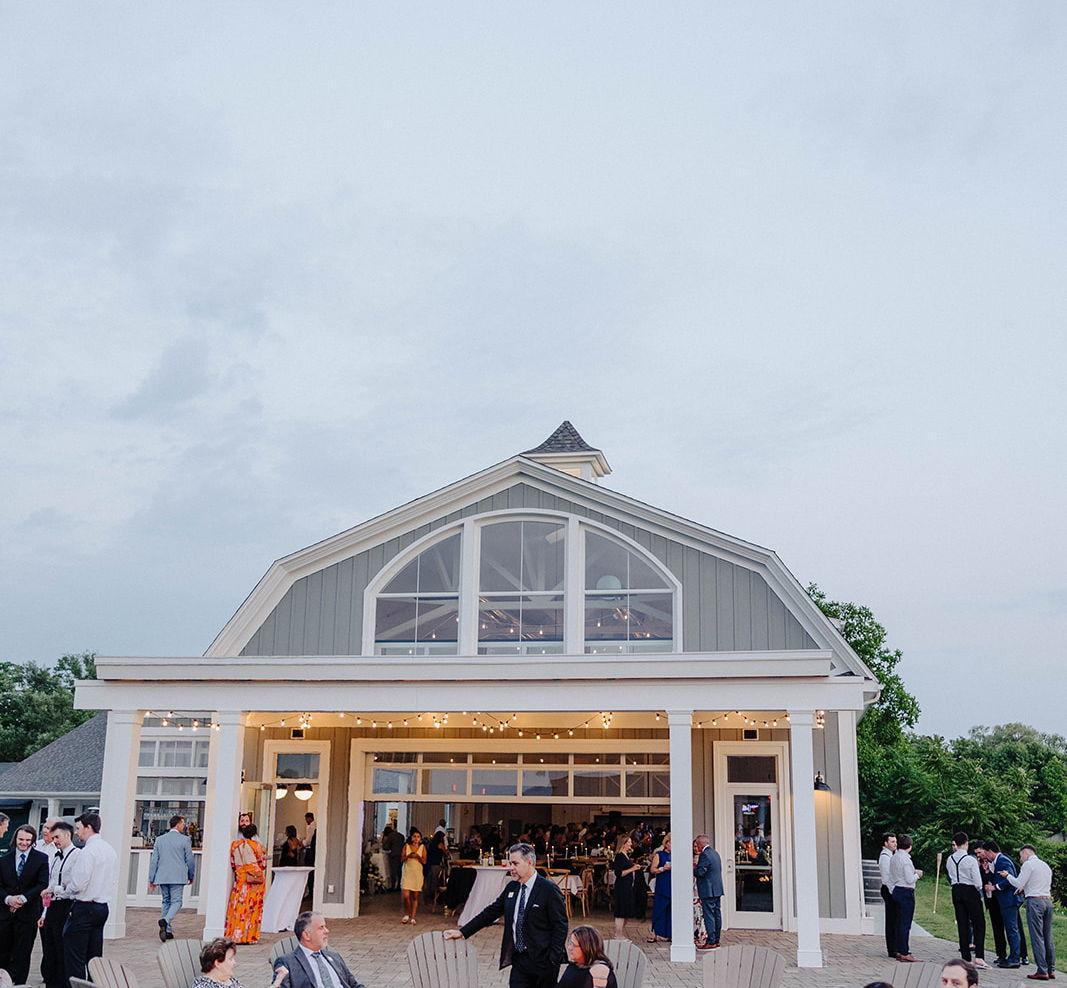 The Fallbrook House features a seamless flow between refined indoor settings and breathtaking outdoor landscapes. Say "I do" on the lakefront lawn with the sparkling water as your backdrop, or host a cocktail hour on the expansive deck where guests can mingle in the fresh air. Inside, the venue offers a warm and inviting atmosphere with large doors that ensure full lake viewsThe space is highly flexible, custom floor plans all accented by bistro lighting for a night of celebration.