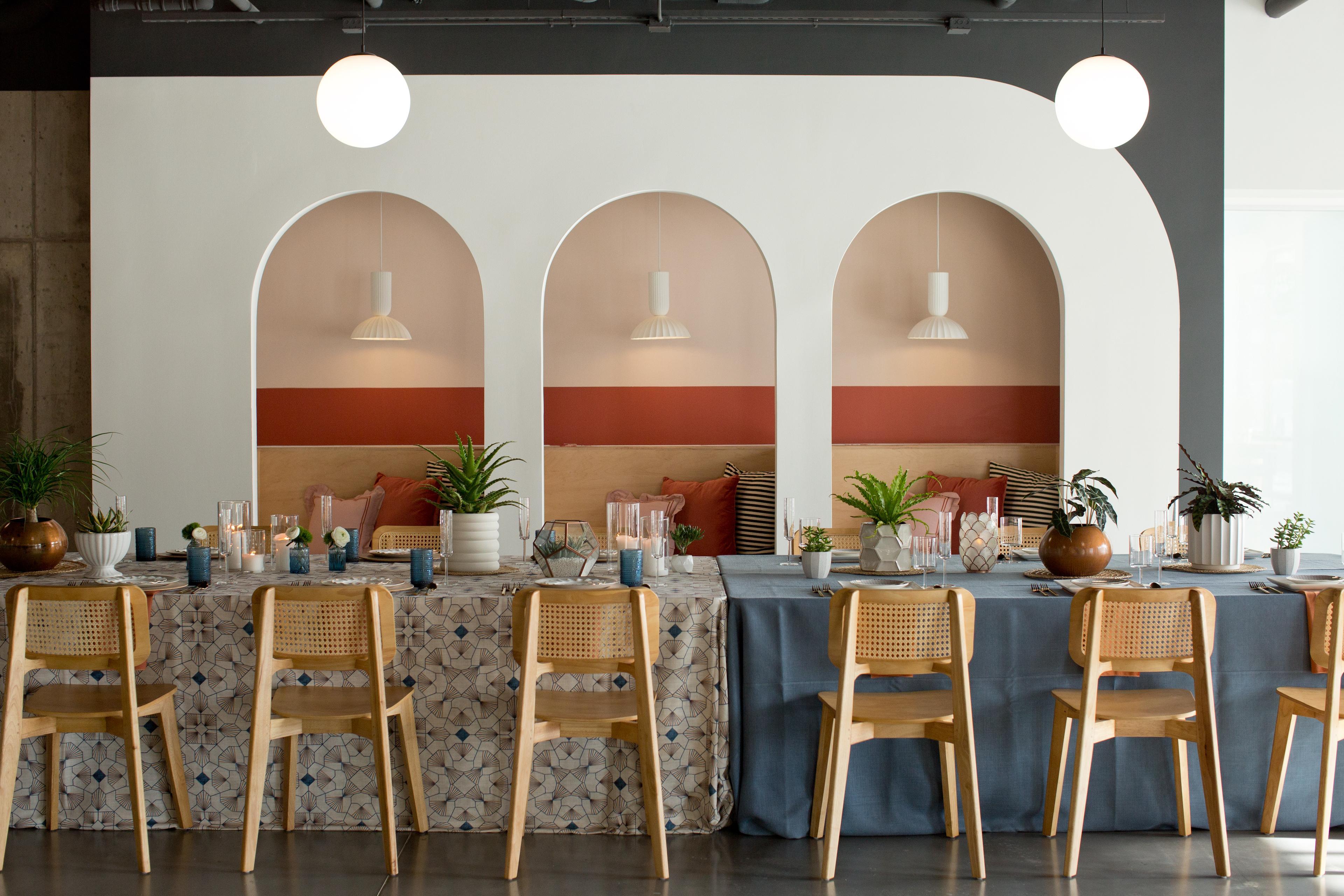 The Foyer offers the just-right size and budget for your event of up to 125 guests. Parties are more fun when the space is comfortably full which gets tricky for smaller events when most full-service venues are designed for events twice your size. Our modern side-by-side venue allows us to create dedicated spaces for each portion of your event. This means you can enjoy a private cocktail lounge prior to taking your seats for dinner or avoid having to flip the room to have ceremony and reception in the same venue. For even smaller events including rehearsal dinners and showers, you can just rent Foyer East or Foyer West for a budget experience that’s even more dialed in to your needs. Our included dinnerware collection and full-service staff makes sure there’s nothing small about your experience. We really mean it when we say we’re bringing full service and design to your small event.