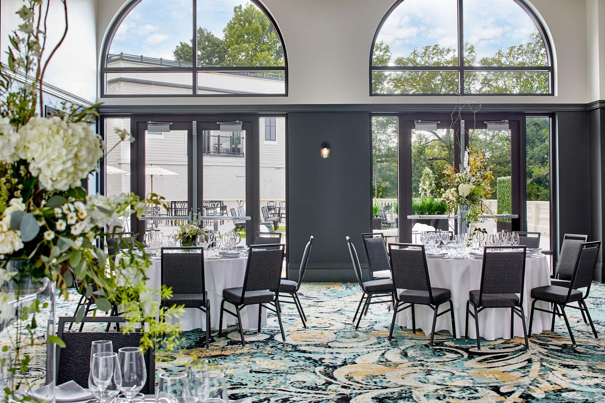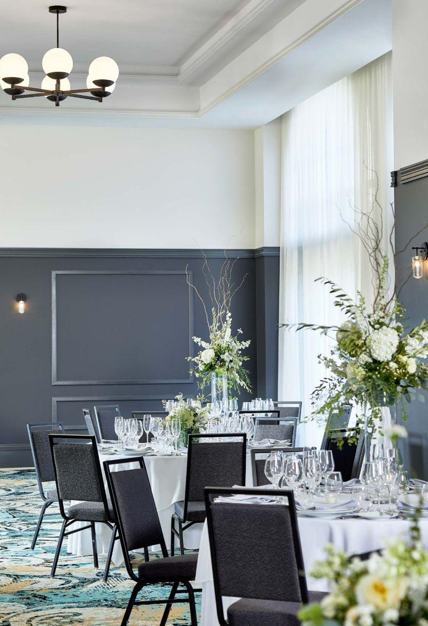 A chic indoor ballroom space that can be divided for smaller events or breakout sessions.