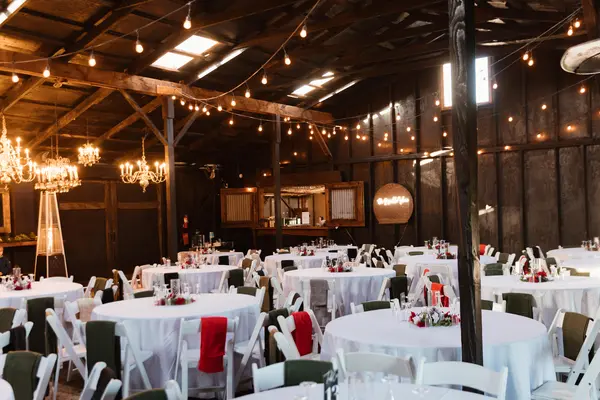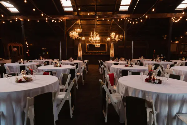 -Chandeliers -Sliding Barn Doors -Space heaters for colder weather -Bar access -French doors