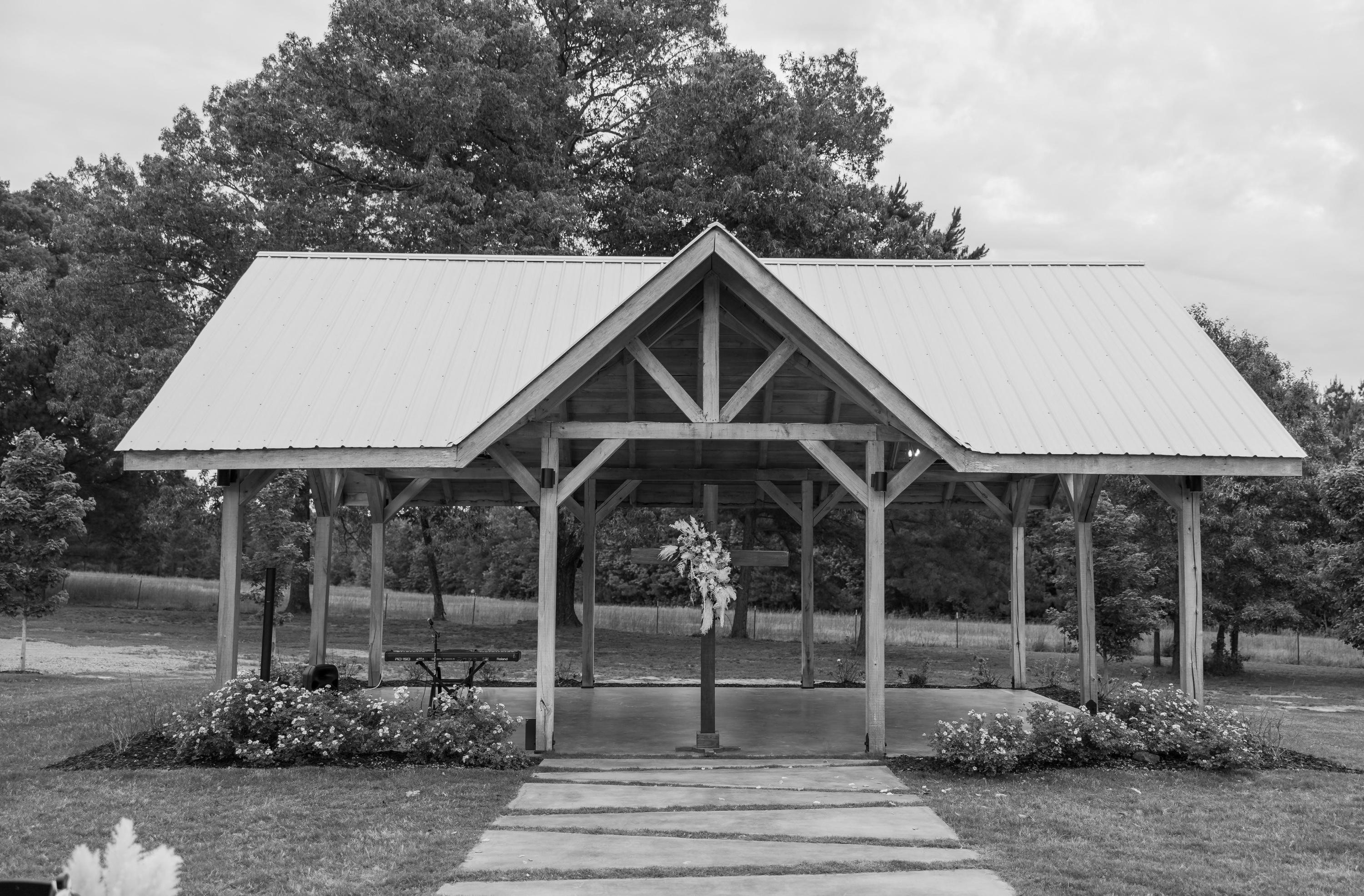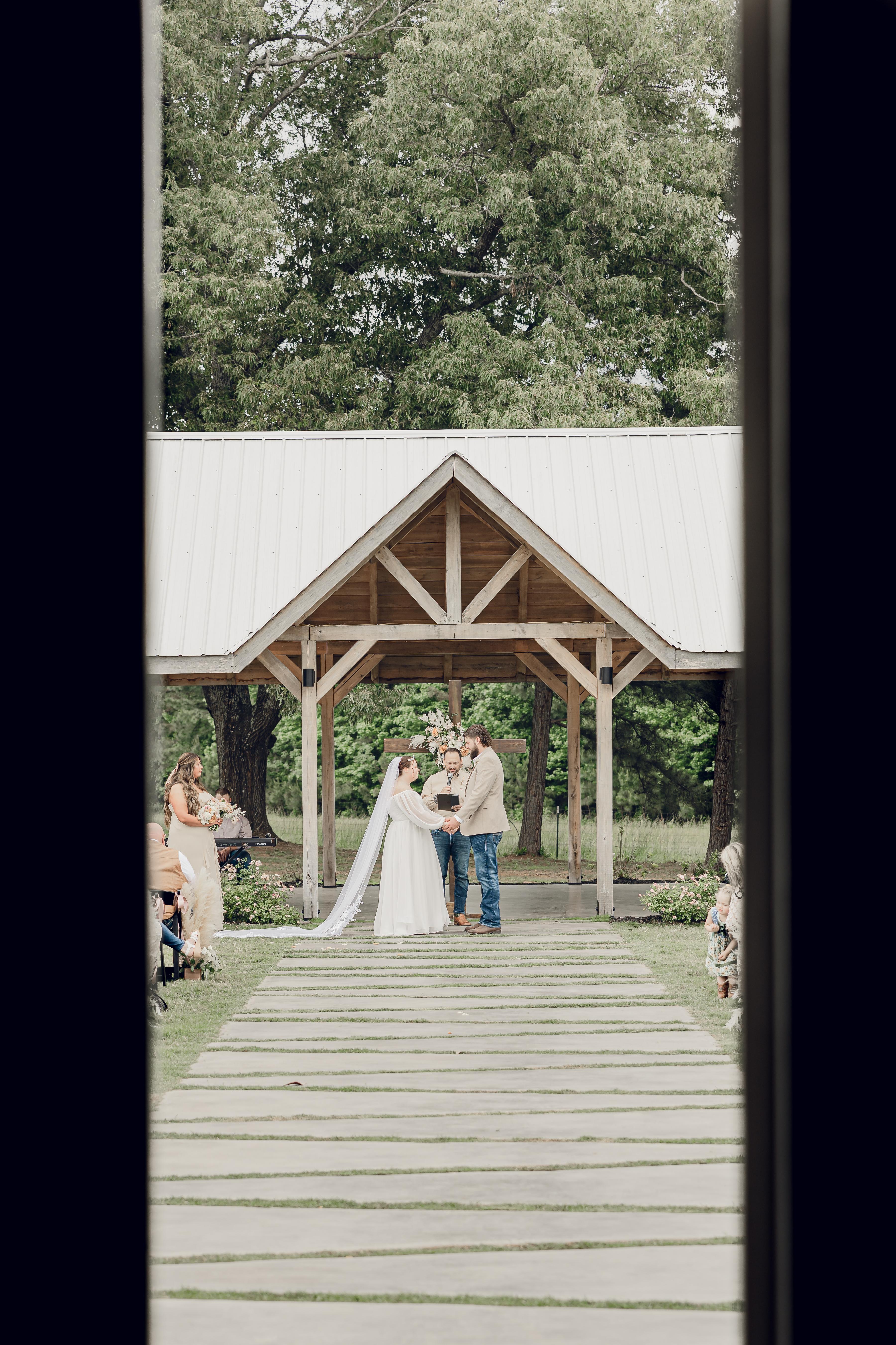 Our outdoor ceremony pavilion has ample space for your wedding party to stand under along with beautiful unique pavers that lead to it. With the option to stand under the pavilion or turn your guest around and face the venue, you can bring your vision to life with either background.