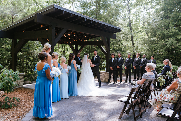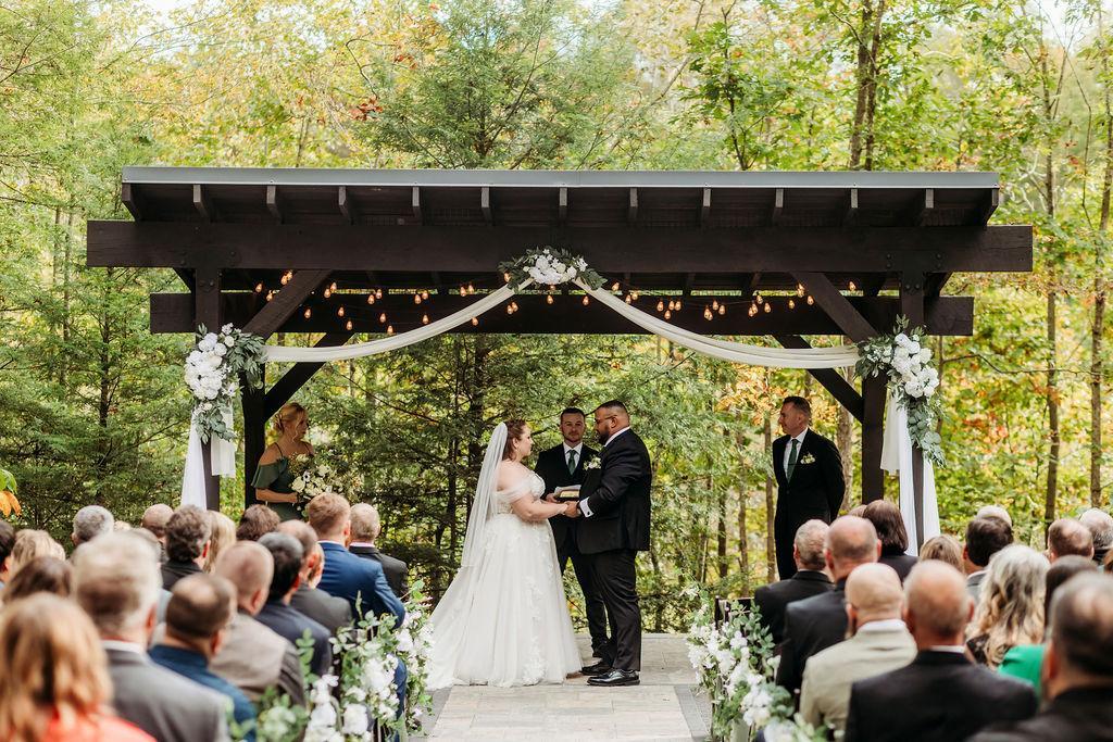 Wedding ceremonies take place just next to The Terrace, outdoors in the Celebration Garden. A scenic bridge leads to a stunning new paved aisle surrounded by forests.