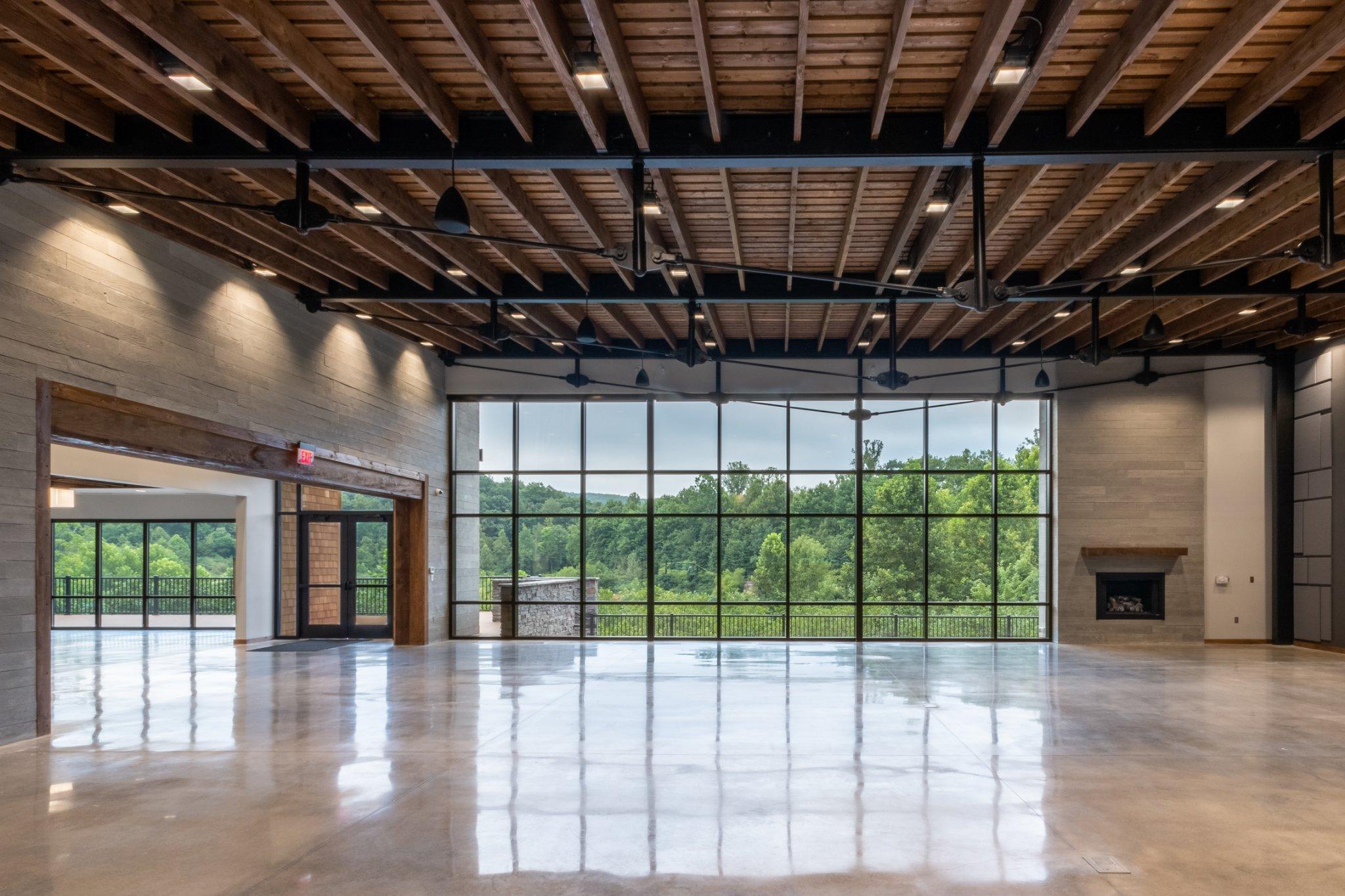 Located within the West Virginia Botanic Garden, The Terrace event center features floor-to-ceiling windows and a large upper and lower back deck, allowing guests to enjoy the surrounding views of nature throughout their event. The Terrace includes a modern, spacious reception main space and a flex space. It also offers a caterers kitchen with private vendor access for easy unloading, as well as two changing suites for wedding parties to get ready and store personal items.