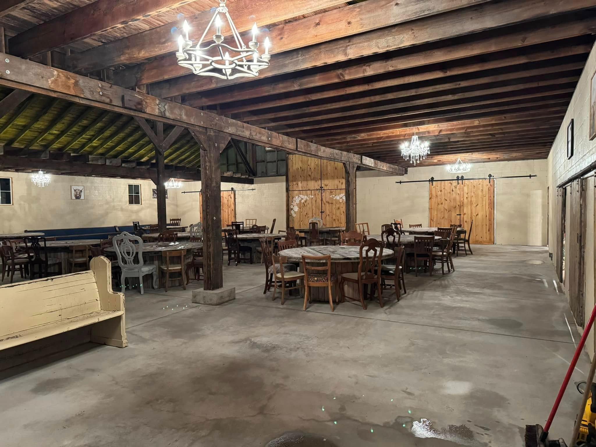 The Venue at Bell Farms is a beautifully restored barn located in a countryside setting just outside of downtown Wheatfield, Indiana. This 3,600-square-foot venue combines historic charm with modern amenities, featuring original barn architecture, a custom bar, and romantic chandelier lighting. Ideal for weddings, social gatherings, and corporate events, the venue offers a warm and inviting atmosphere with a capacity of up to 250 guests.
