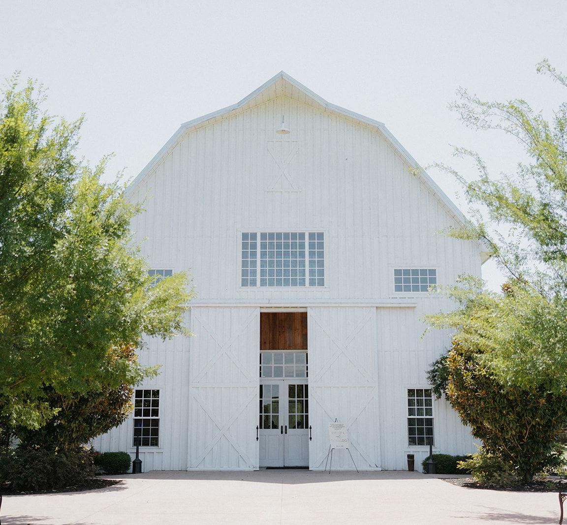 A charming white barn with timeless elegance