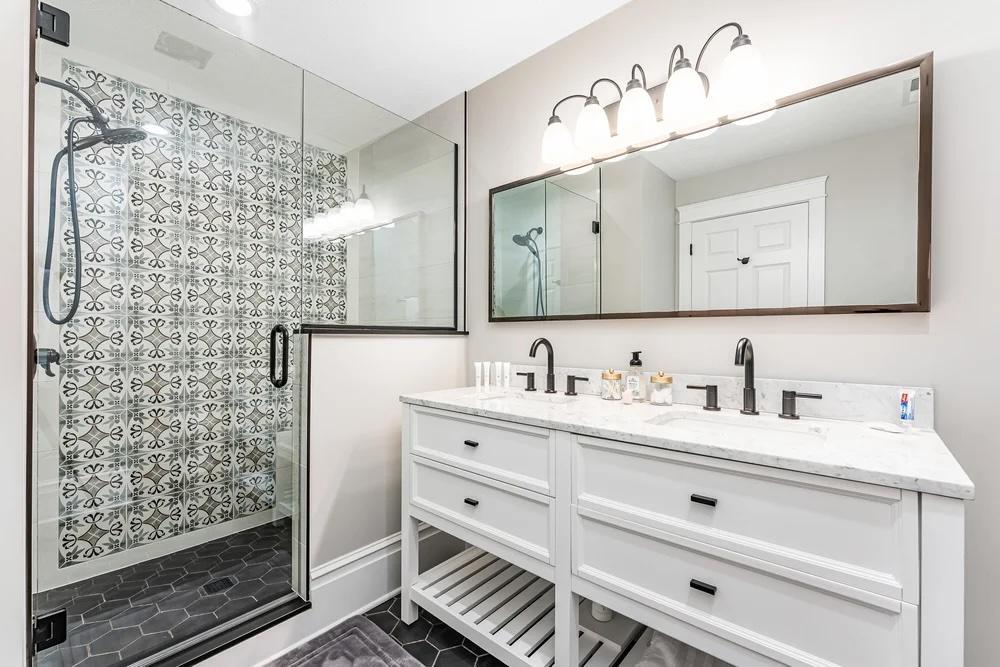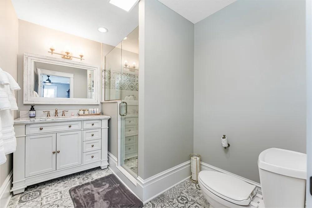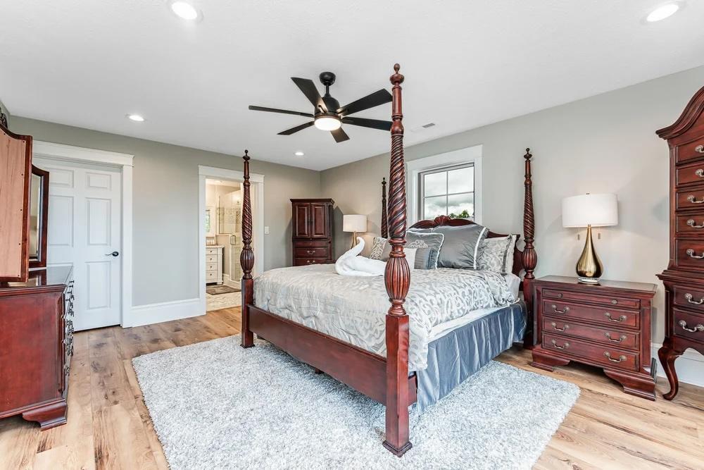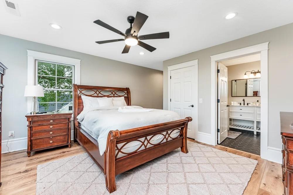 Our Main House has 5 bedrooms (2 Kings, 3 Queens), 3 living spaces, a dining room, a large spacious kitchen (2 refrigerators, 2 sinks, 2 dishwashers, 2 ice machines, and a gas range) 7 bathrooms, a beauty suite with professional makeup lights, a 1,600 sq. ft. wraparound porch, and a pool!