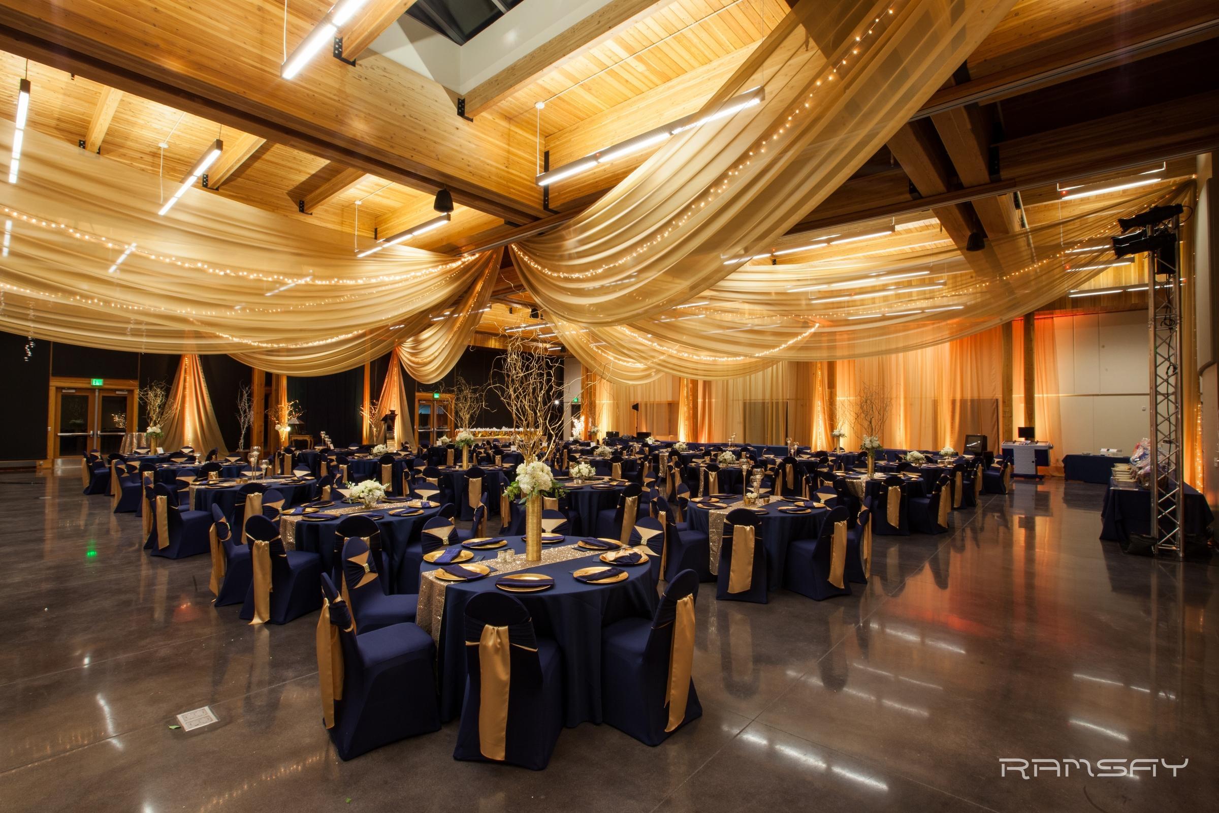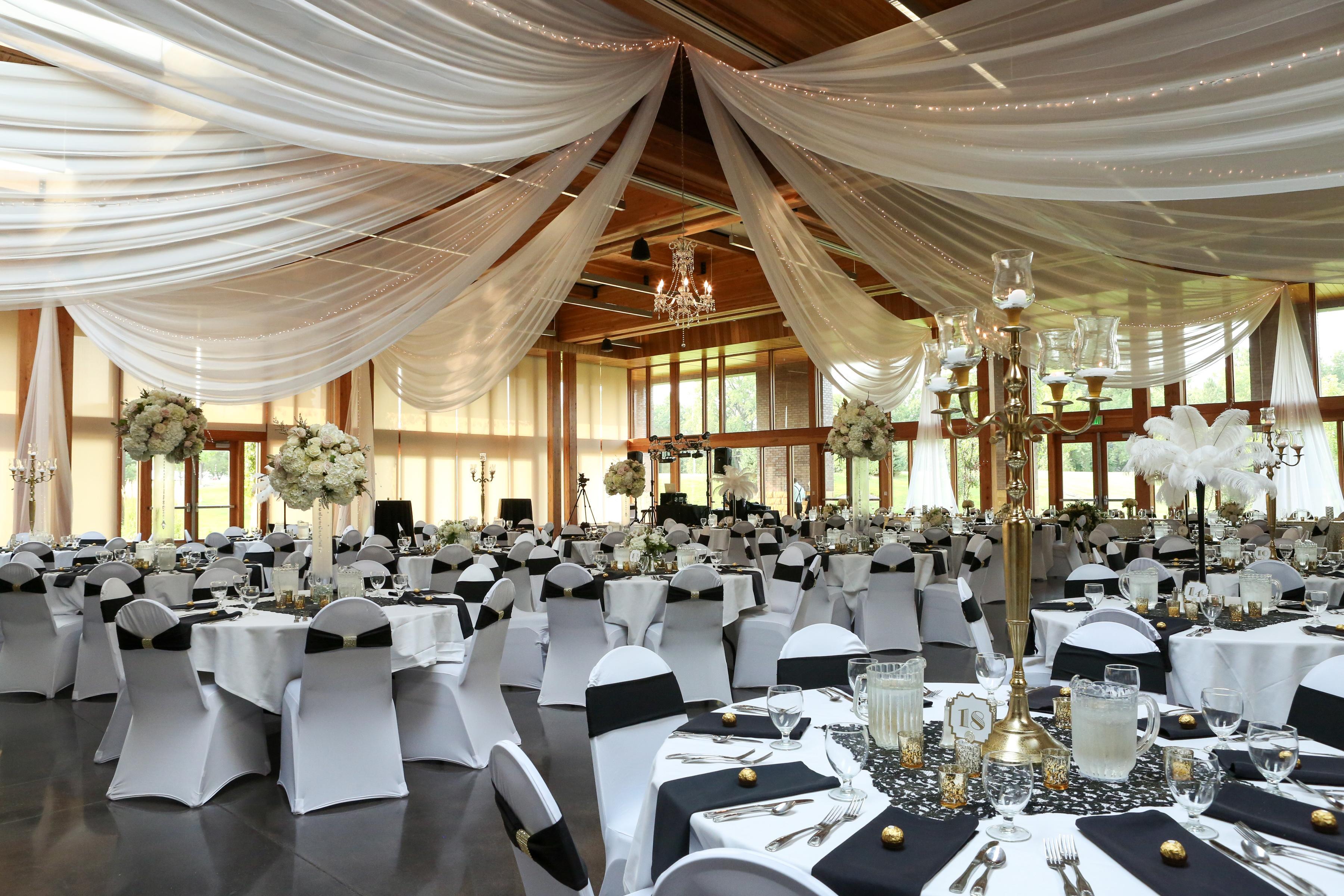 Vadnais Heights Commons is a magnificent facility that will ensure your event’s success. The venue's modern design incorporates beautiful architure with a direct connection to the natural spaces surrounding it. Soaring 28-foot ceilings, wood and stone building features, and a stunning "outside-in" aesthetic define the facility. Skylights and floor-to-ceiling windows bring natural lighting throughout the space. From cozy evenings by our grand stone fireplace to sun-drenched receptions overlooking scenic vistas, the Vadnais Heights Commons offers a sophisticated canvas for your unique love story. Experience a seamless blend of elegance and warmth in a space designed to make every moment unforgettable.