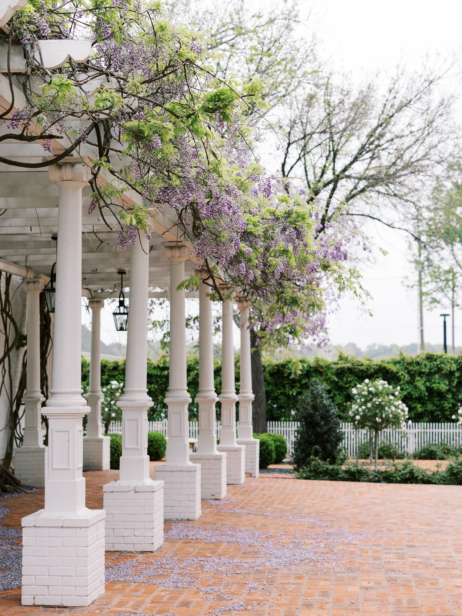 A dreamy backdrop for your reception, ceremony, or cocktail hour! Our turfed trellis lawn features a romantic veranda dripping with lush, wisteria vines and a neighboring private rose garden.