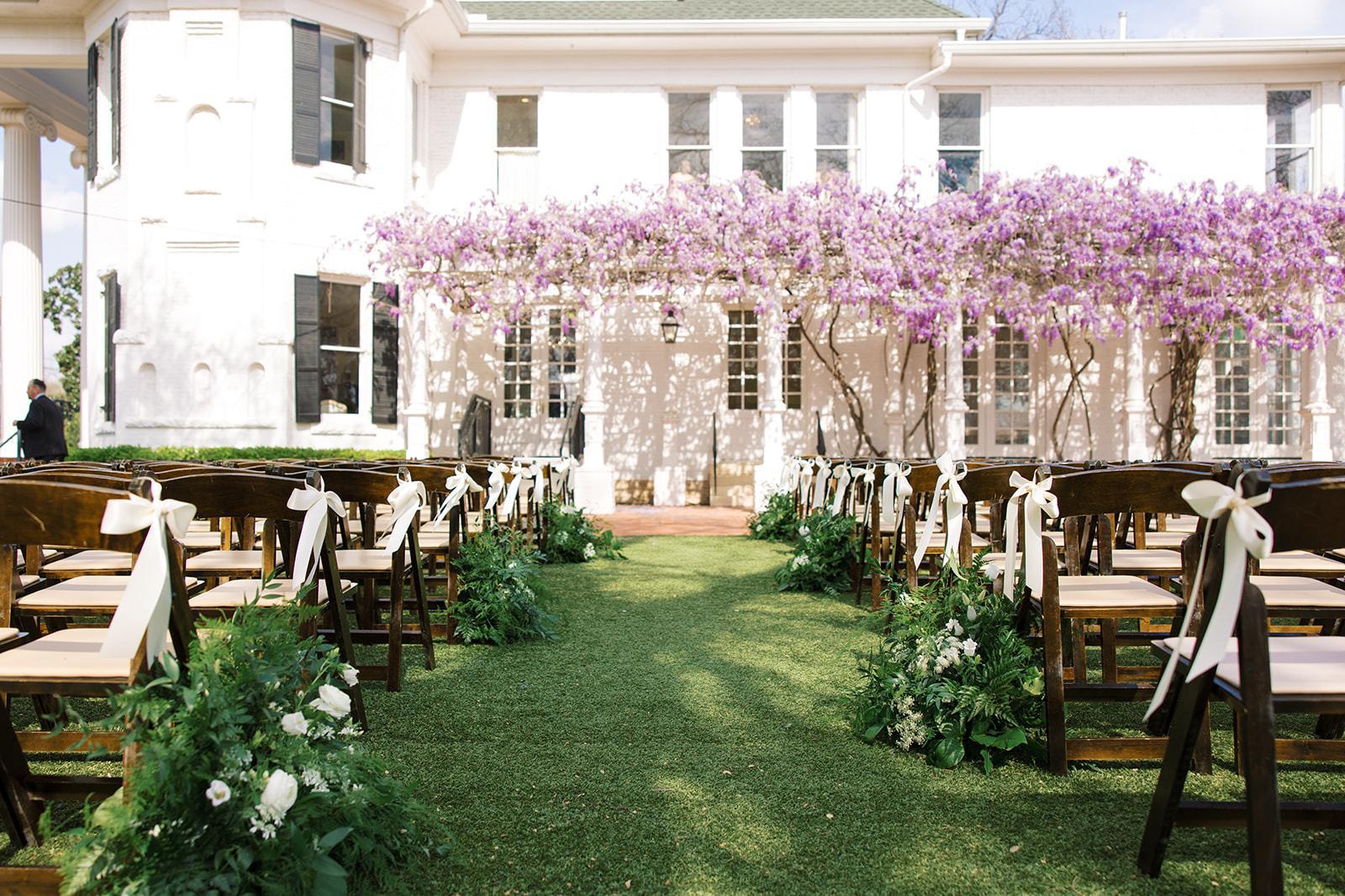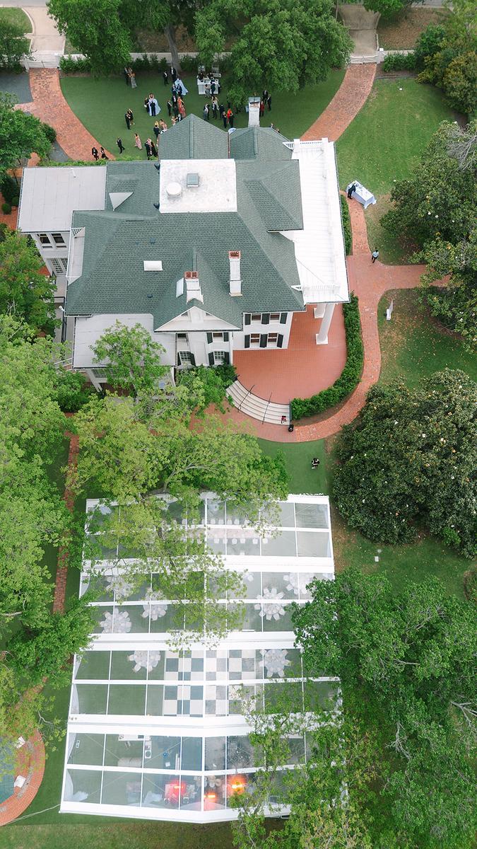 Expansive turfed lawn, mature pecan trees offering plentiful shade, charming gazebo and a stunning backdrop featuring the mansion to complement any ceremony or reception with that elevated backyard estate feel. While this space if gorgeous for al fresco gatherings, outdoor tenting is also a popular choice on the lawn. For events held March-November outdoor tenting is completely optional and can be arranged in addition to your venue rate via our in house tent or an approved 3rd party.