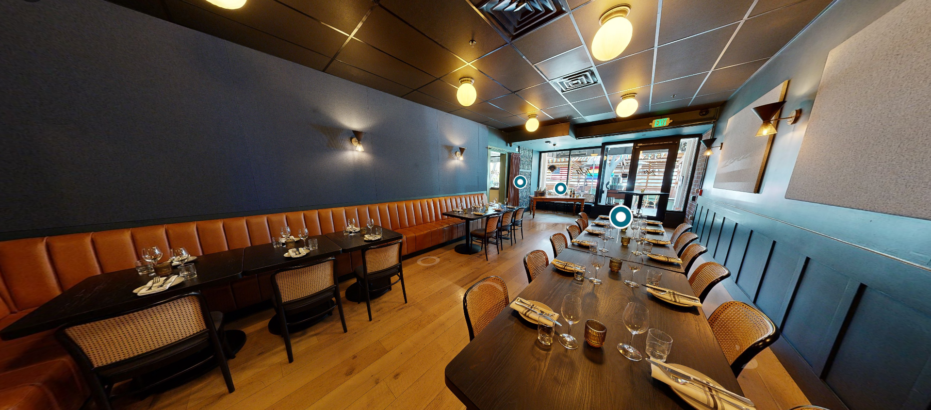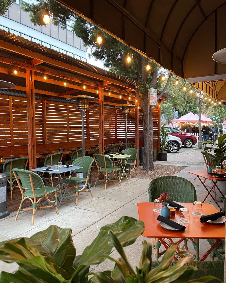 Embrace the charm of California living with a celebration on our fully covered and heated patio. This versatile outdoor space provides a romantic, airy setting for everything from sunny bridal showers to cozy, starlit rehearsal dinners. The parklet-style design allows you and your guests to enjoy the downtown Palo Alto energy while remaining sheltered in a private, temperature-controlled environment. It’s the perfect blend of casual elegance and refined French bistro style.