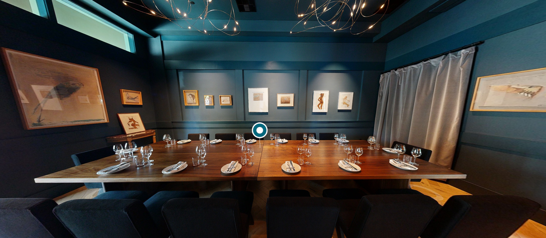 Elevate your celebration in this fully private sanctuary where sophisticated design meets an intimate atmosphere. Bathed in rich, moody tones and curated artwork, this space is an exquisite choice for a high-end rehearsal dinner or an exclusive "farewell brunch". With dedicated A/V capabilities and a private restroom, it offers a seamless blend of luxury and functionality for couples seeking a truly secluded dining experience in the heart of downtown Palo Alto.